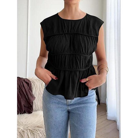 Unique Design: Featuring ruched details and a tiered shirred design, these cute crew neck blouses add a unique texture to your wardrobe, making them perfect for casual outings or special occasions
