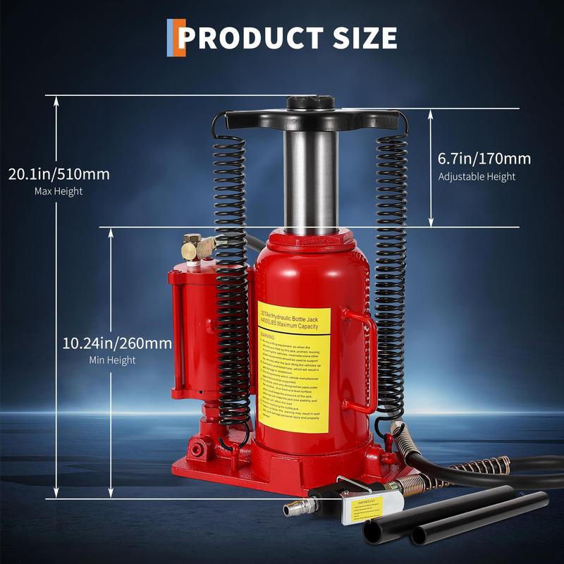 · 【Heavy Duty Leak-Proof Structure】This jack is durable and leak-proof even under a 20-ton load with a cast iron body, aluminum pump and fully welded internal and external structure. Designed for repeated use on construction sites or in harsh roadside conditions.