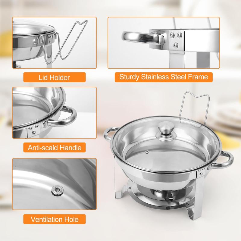 · Versatile Serving Option: With a large 5 quart capacity, our chafing dish set is perfect for various occasions, from small gatherings to large events. Making it ideal for restaurants, buffets, catering, schools, corporate events, parties, hotels, and weddings for professional food presentation.