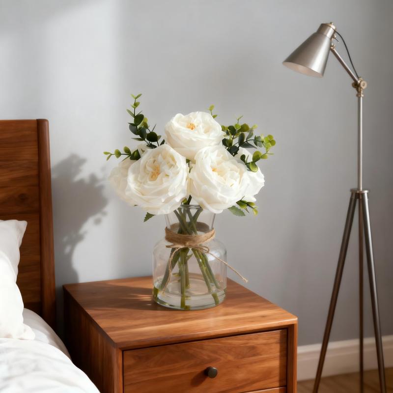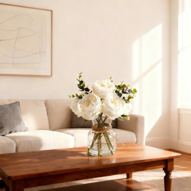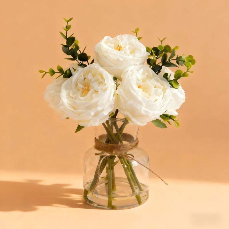 · ✔【Breathtakingly Lifelike Floral Design】Enjoy everlasting elegance. Our faux flowers in vase are crafted with premium, soft-touch materials and intricate petal details that mimic real roses. Arranged in a clear glass vase with realistic "water" filler, this dining room centerpiece adds instant sophistication without any maintenance.