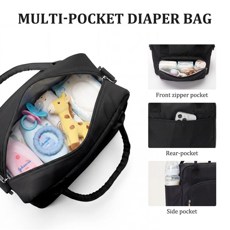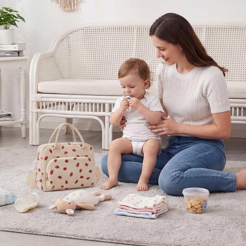 Large Size: Dimensions: 11.4”L × 6.7”W × 9”H, spacious enough to hold diapers, bottles, clothes, snacks, and other baby necessities, yet not bulky for daily outings.