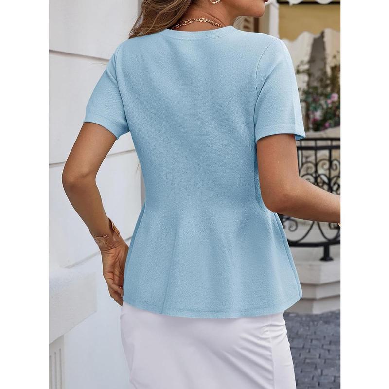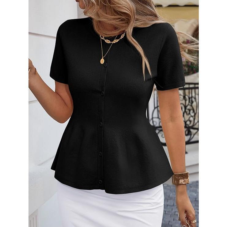 Saodimallsu Womens Short Sleeve Cardigans Ruffle Button Down Crew Neck Peplum Babydoll Knit Sweater Tops