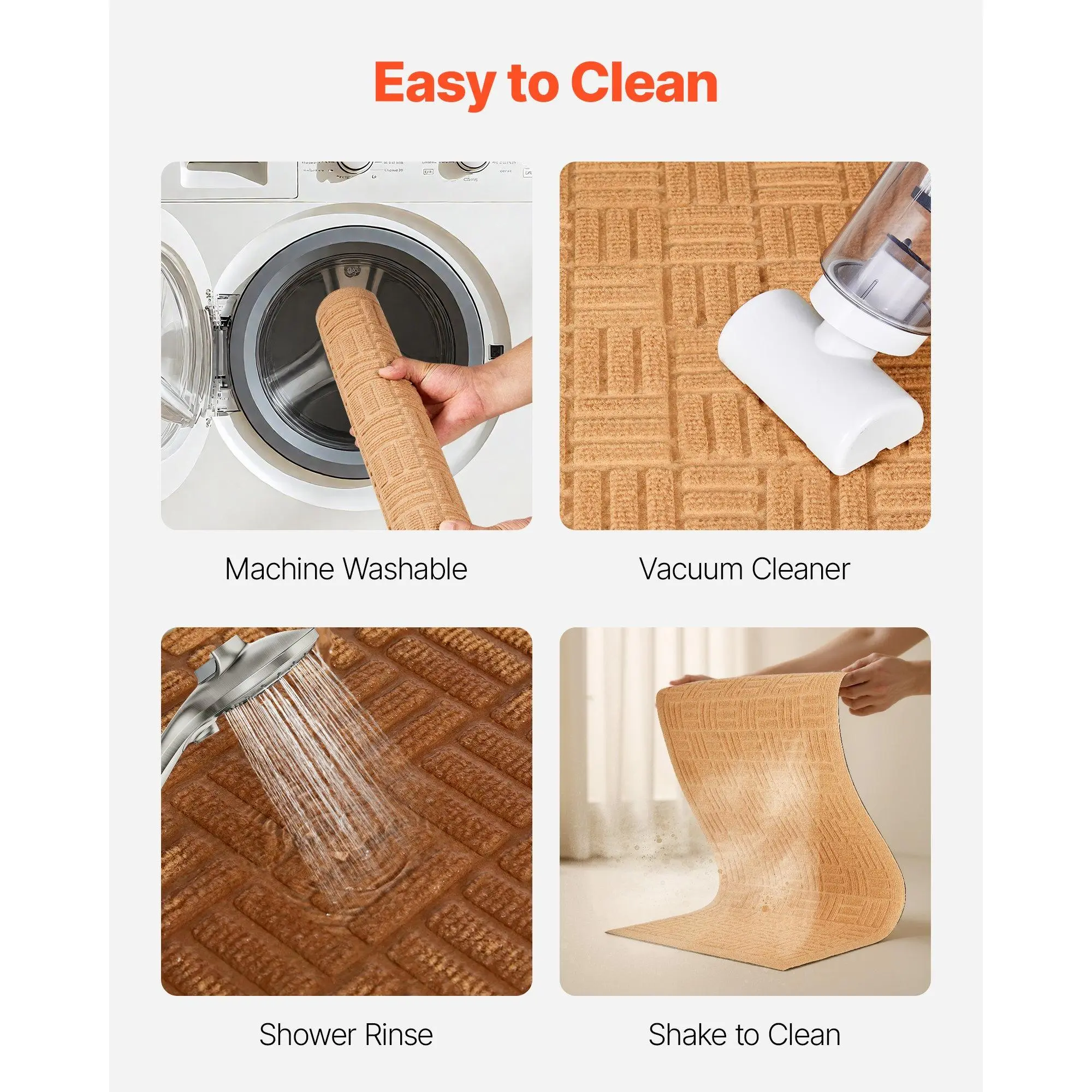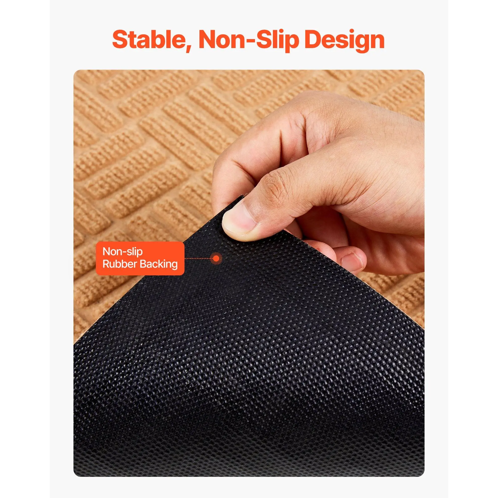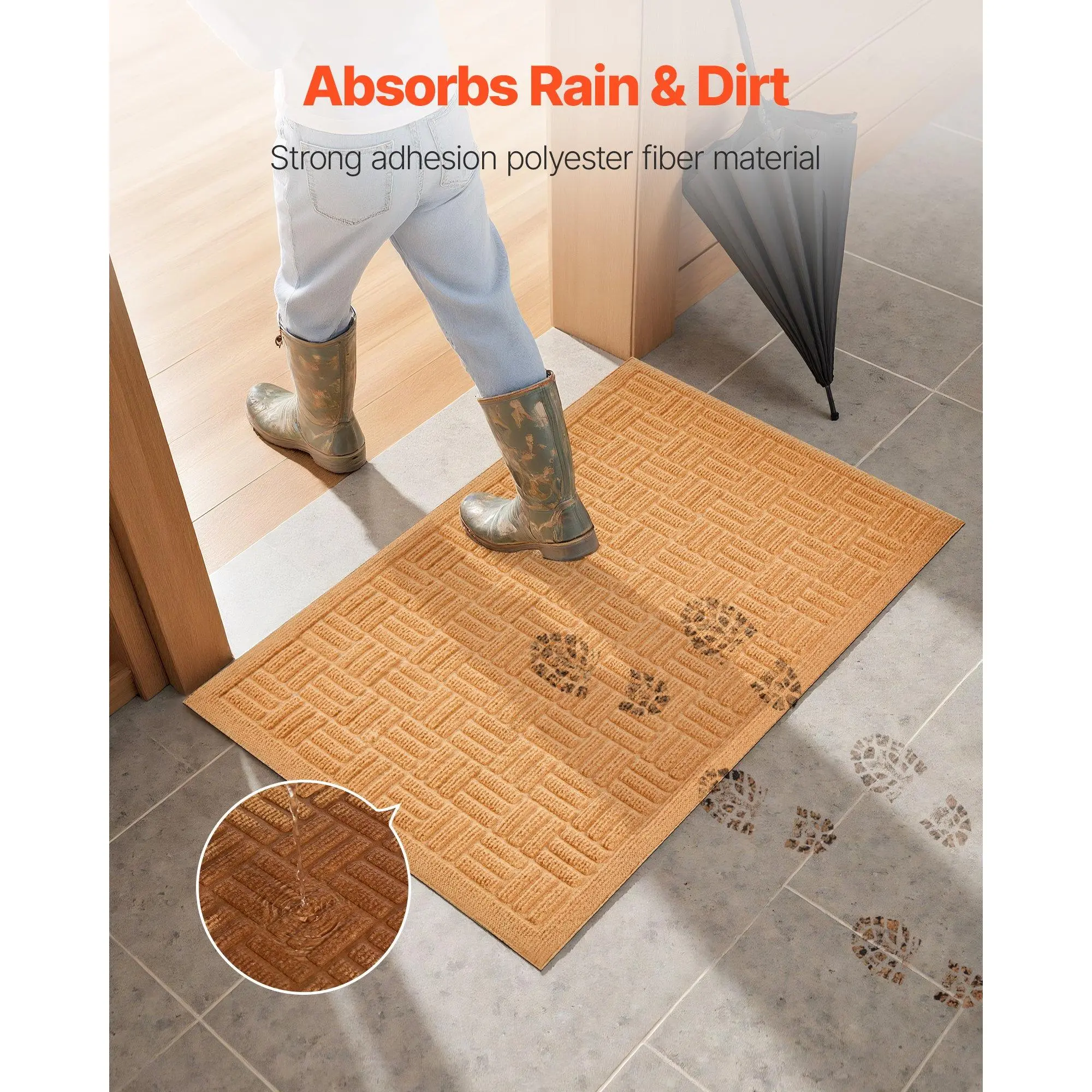 Absorbs Dirt & Water: This door mat features dense polyester fibers and a textured design that absorbs dampness and dirt from shoes, boots, and pet paws, keeping your home fresh and dryNon-Slip & Durable: The rubber backing of the welcome mat grips the floor securely, avoiding slips on tile, wood, and marble.Clean the surface before placing it for maximum security and stabilityPet-Friendly: Reinforced edges resist pet claws, avoiding rips and tears.This front door mat’s design makes it an excellent choice for homes with pets, offering a secure, durable surface for your furry friendsLow-Profile Design: At just 0.3 inches thick, this indoor door mat fits seamlessly under doors and won’t curl up, ideal for entryways, patios, kitchens, garages, and moreEasy to Clean: Vacuum or machine wash the outdoor door mat to easily remove dirt, dust, and moisture.It’s colorfast, durable, and built to last through repeated cleaningsVEVOR Door Mat, 29.53 x 17.72 Inch, Front Door Mat Outside Entrance with Non-slip Rubber Backing, Dirt-Resistant & Absorbent, Easy to Clean, Low-Profile Doormat for for Entryway, Patio, Porch, Beige