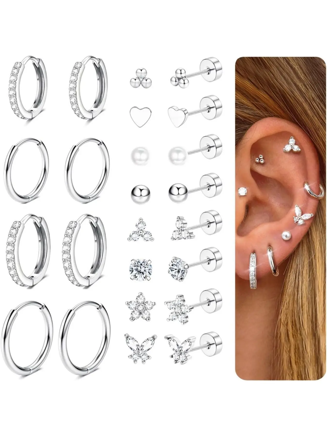 12Pairs Flat Back Earrings for Women Men Hypoallergenic Steel Earrings for Sensitive Ears 14K Gold Hoop Stud Sleeper Earrings Flatback Cartilage Tragus Helix Piercing Earrings Studs Earrings