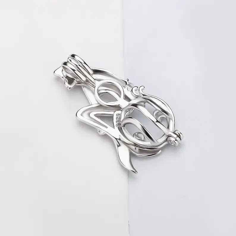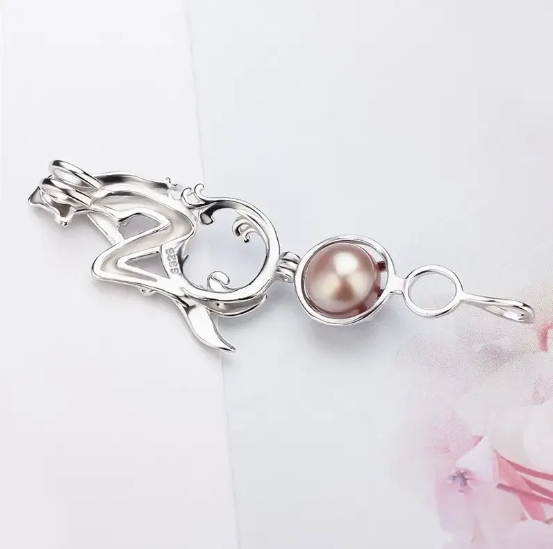 5. Elegant 925 Sterling Silver Singing Mermaid Pearl Cage Pendant Necklace + Pearl