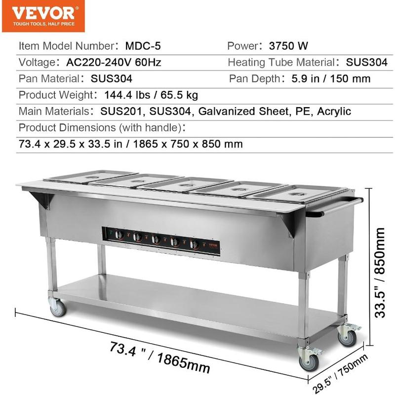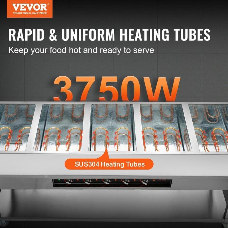 VEVOR Commercial Food Warmer, 2000W Electric Steam Table with 4x 20.6QT Pans, Versatile Food - Grade Stainless Steel Server with Countertop Shelf, Movable Buffet Catering Warmer for Party RestaurantVEVOR Commercial Food Warmer, 2000W Electric Steam Table with 4x 20.6QT Pans, Versatile Food - Grade Stainless Steel Server with Countertop Shelf, Movable Buffet Catering Warmer for Party Restaurant