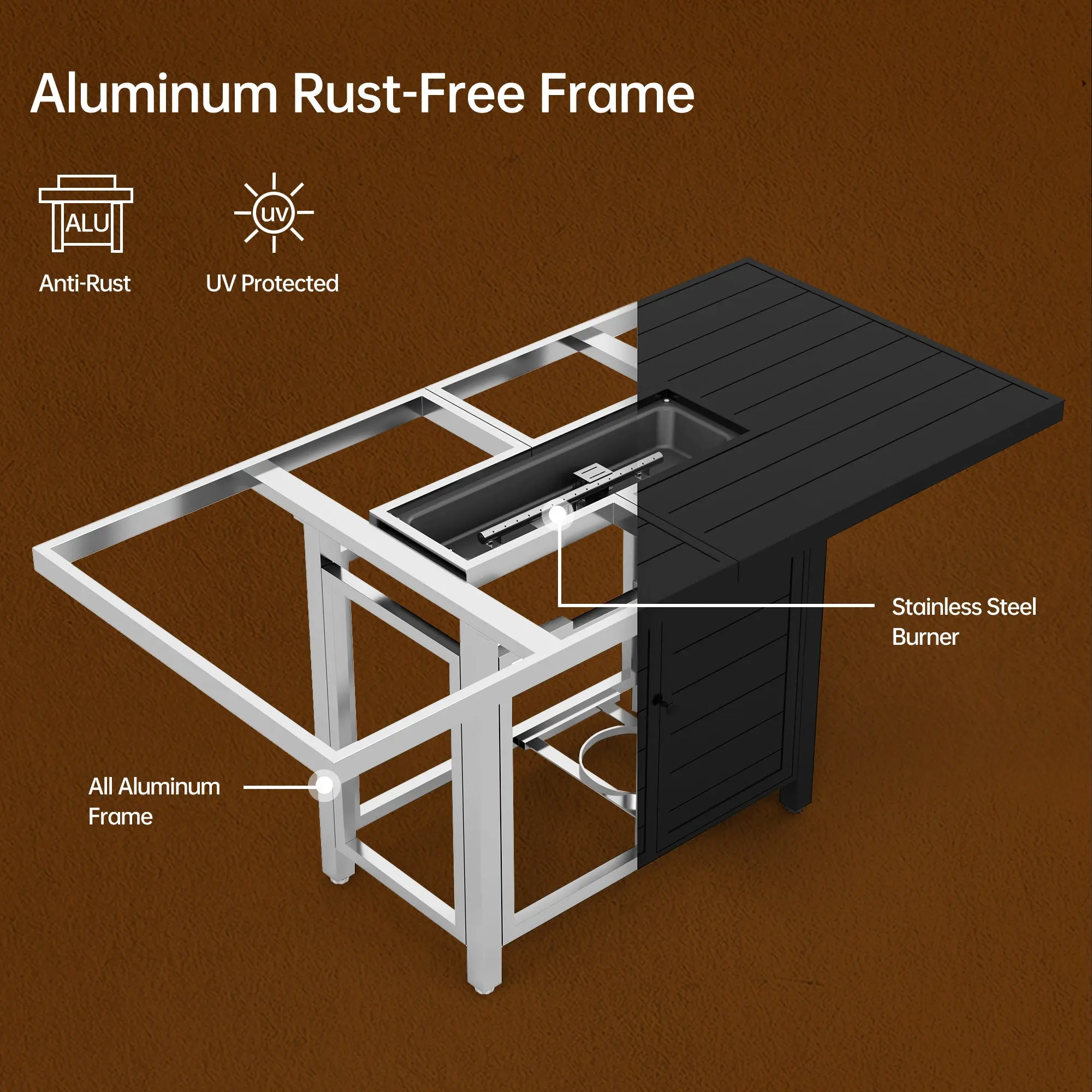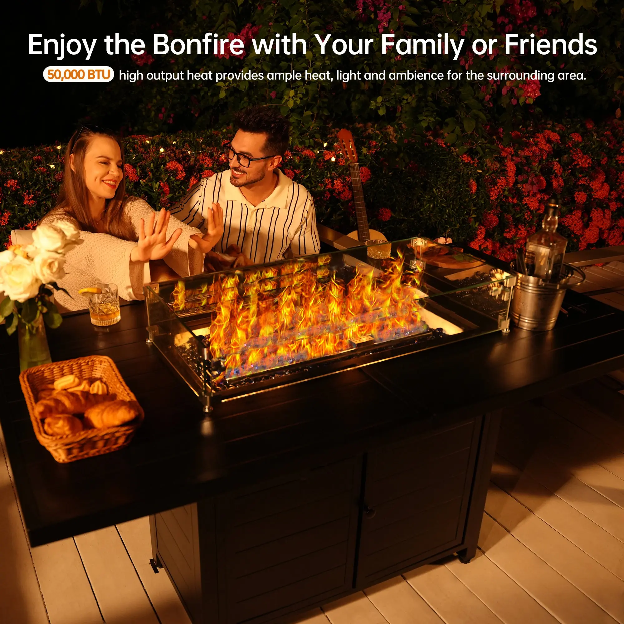 ·Generous Tabletop Space: The 59.8" W x 28.9" D propane fire pit table offers plenty of room for food and drinks. When the fire is off, simply cover it with the included lid to convert it into a sleek outdoor dining table—perfect for entertaining.