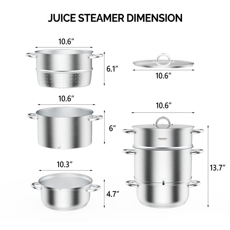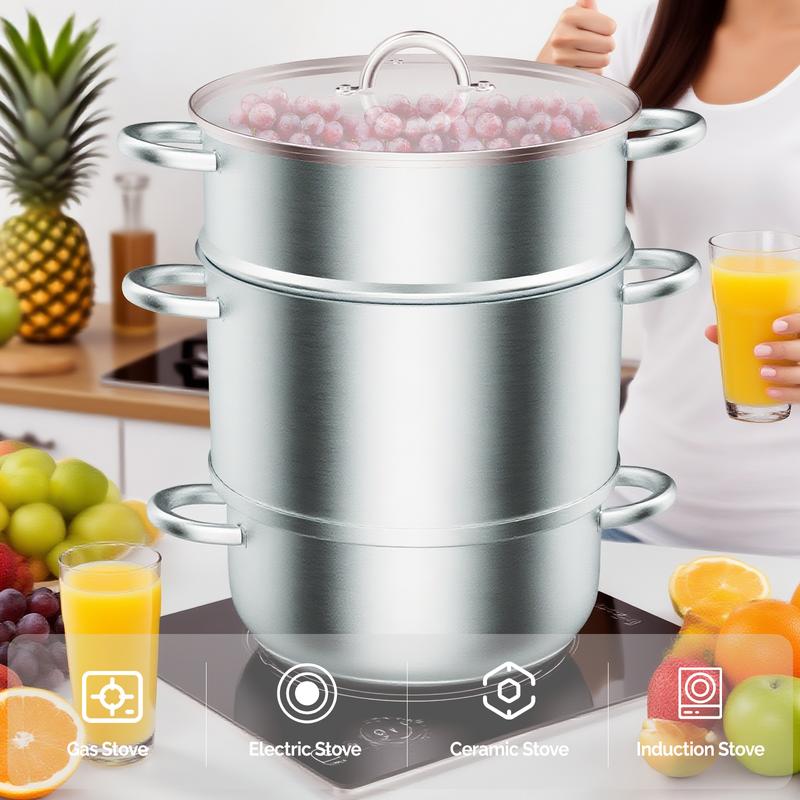 This 3-layer juice steamer is a must-have for every kitchen, suitable for home daily cooking, family gatherings, party catering, breakfast prep and more!