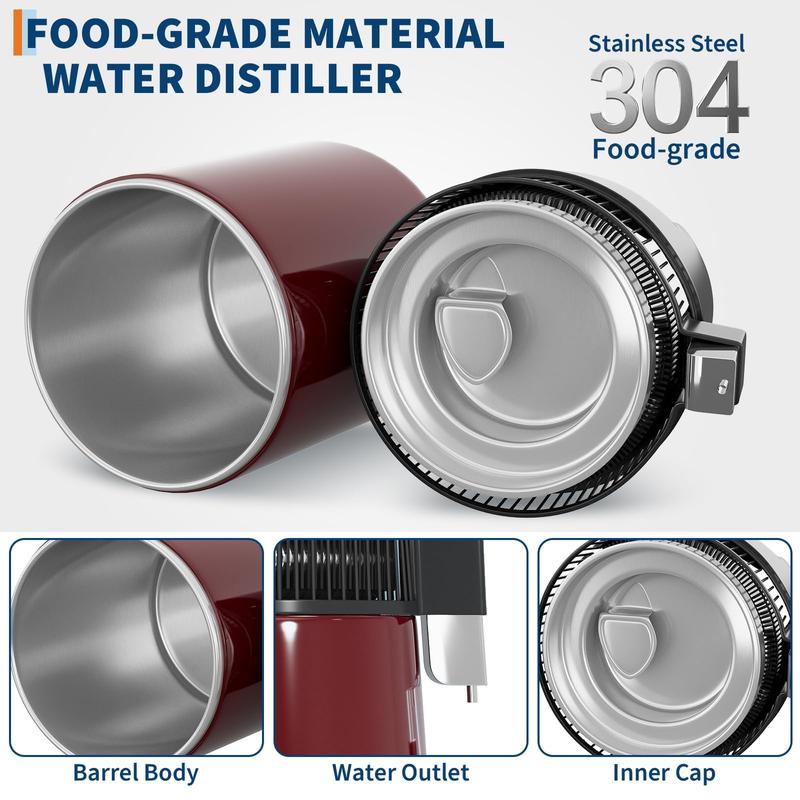 · 【ADVANCED COOLING & SAFETY FEATURES】Our distilled water machine features an aluminum cooling fan and dual stainless steel condenser tubes for rapid heat dissipation and consistent performance. Includes auto shut-off at 230°F and overheat protection for worry-free operation.