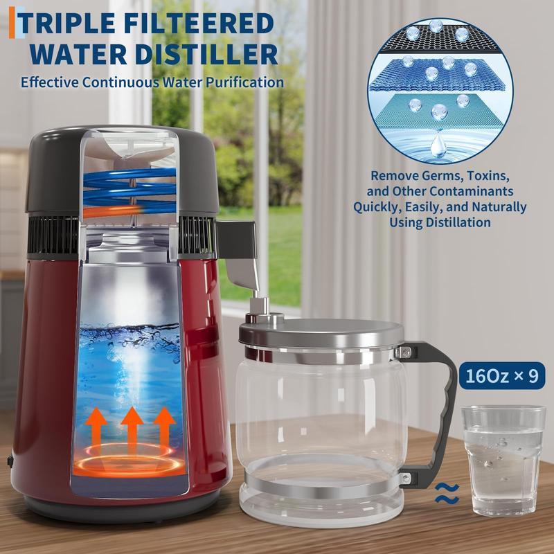 · 【EFFORTLESS ONE-BUTTON OPERATION】Experience true simplicity with our home water distiller.Simply press start – the machine automatically shuts off when distillation is complete. No babysitting needed. For continuous batches, just press reset. Enjoy true hands-free convenience for home or office use.