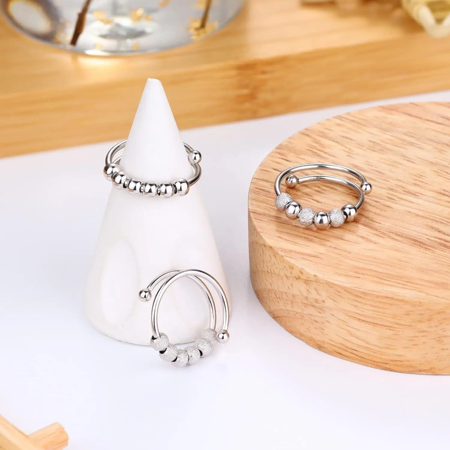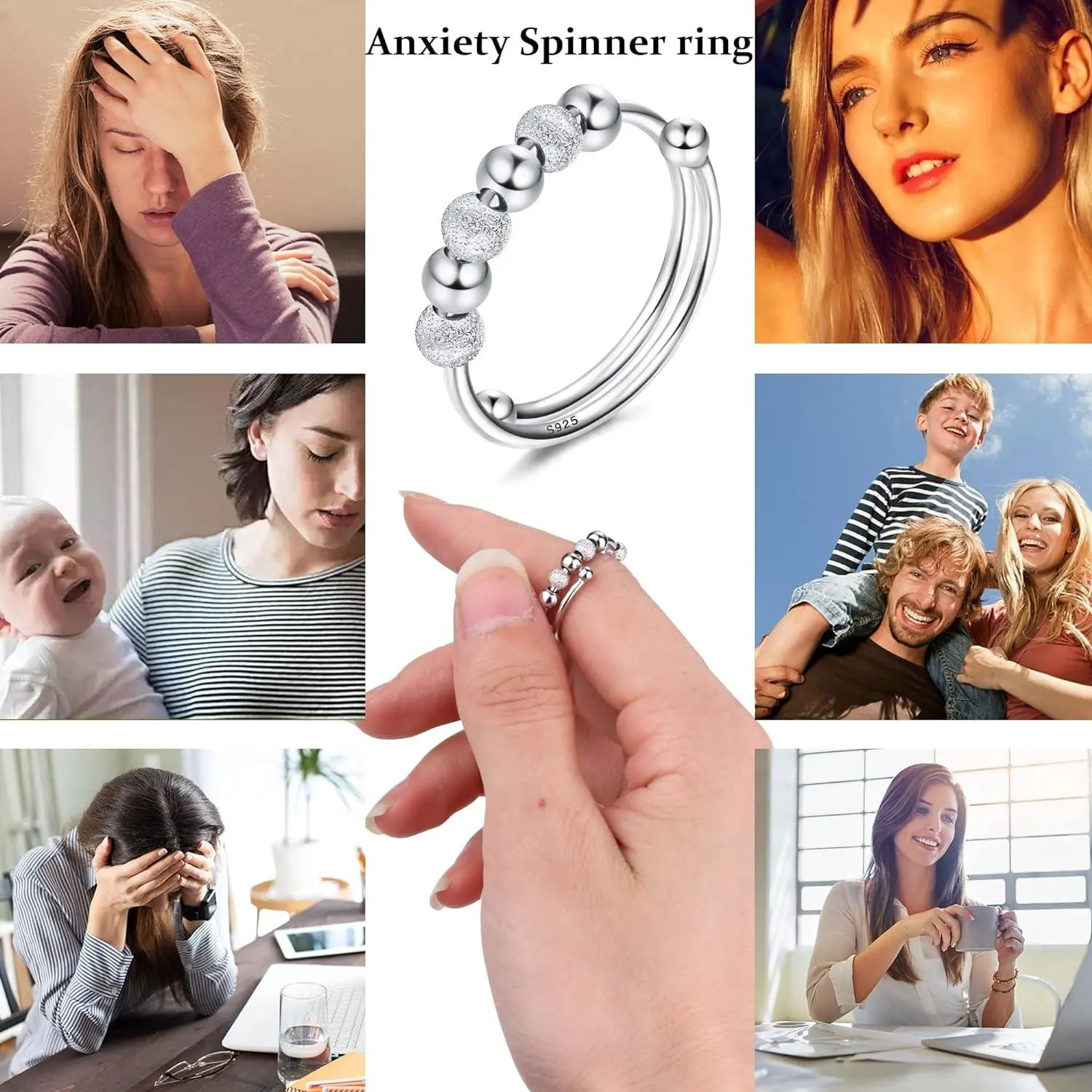 The anxiety ring is made of genuine 925 sterling silver with a smooth and shiny finish. The anti-stress ring comes with 6 circular geometric massage beads. You can rotate the beads to relieve anxiety and distraction, relax and calm down and break bad habits such as finger biting and nail biting.