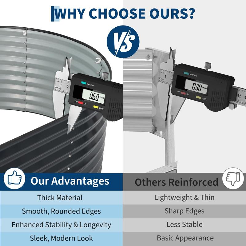 · Durable Galvanized Steel Construction: Crafted from thick, high-quality galvanized steel, this garden bed is built to withstand the elements without rusting. Unlike wood, this durable metal frame will not rust or warp, ensuring you have a sturdy and attractive centerpiece for your garden for many seasons to come.