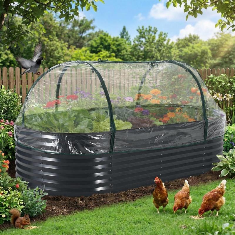 · Protective Greenhouse Cover: Extend your growing season and protect your garden bed from animals and harsh weather with the included greenhouse cover. It features convenient, roll-up zippered screen doors on both sides, allowing for easy access for watering and harvesting while promoting excellent air circulation.