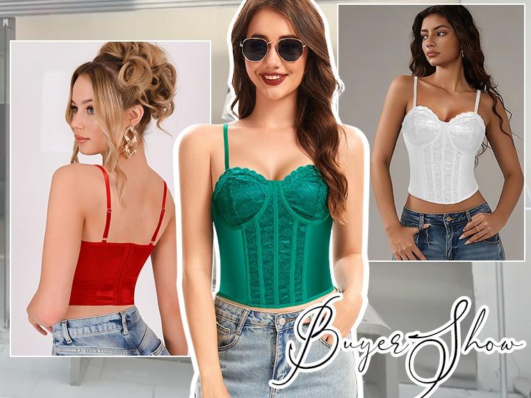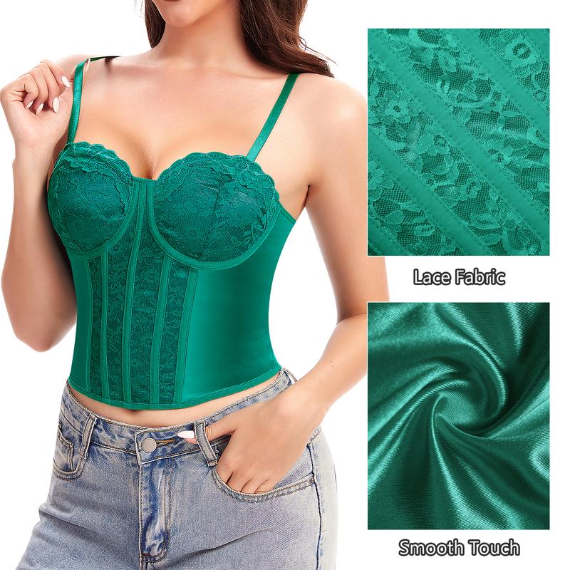 ·Lace Corset Tops: Soft and skin-friendly with a romantic, elegant look. The back fabric has a subtle sheen for a more luxurious feel than ordinary matte material.
