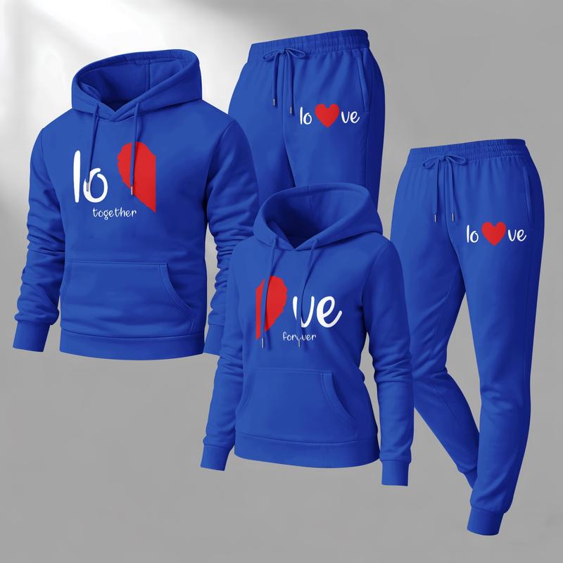 5. Couple's LOVE Print Hooded Sweatshirt and Drawstring Sweatpants Set, Casual Sportswear, Long-Sleeve Hooded Jacket and Pants, Suitable for Autumn and Winter, Everyday Wear, Tracksuit, Casual Athletic Wear
