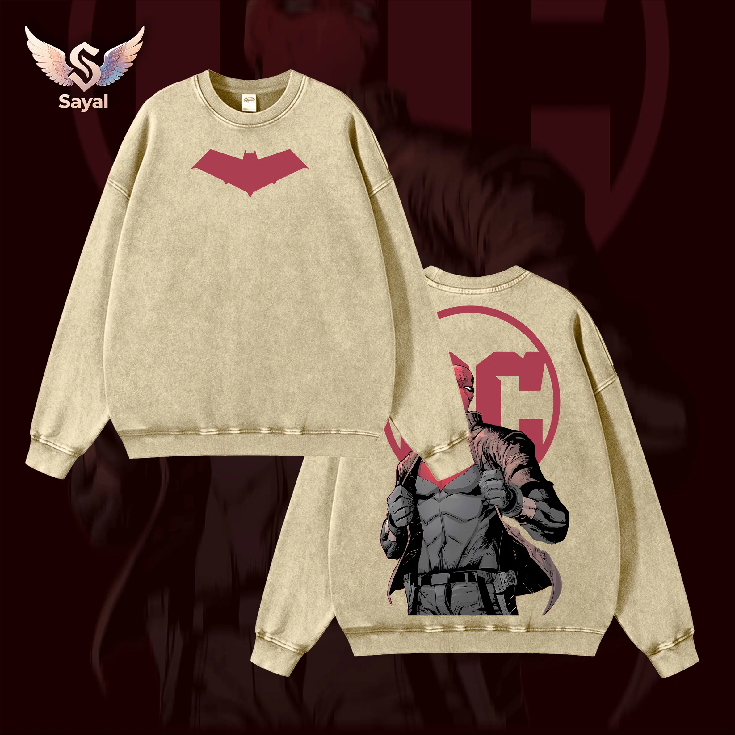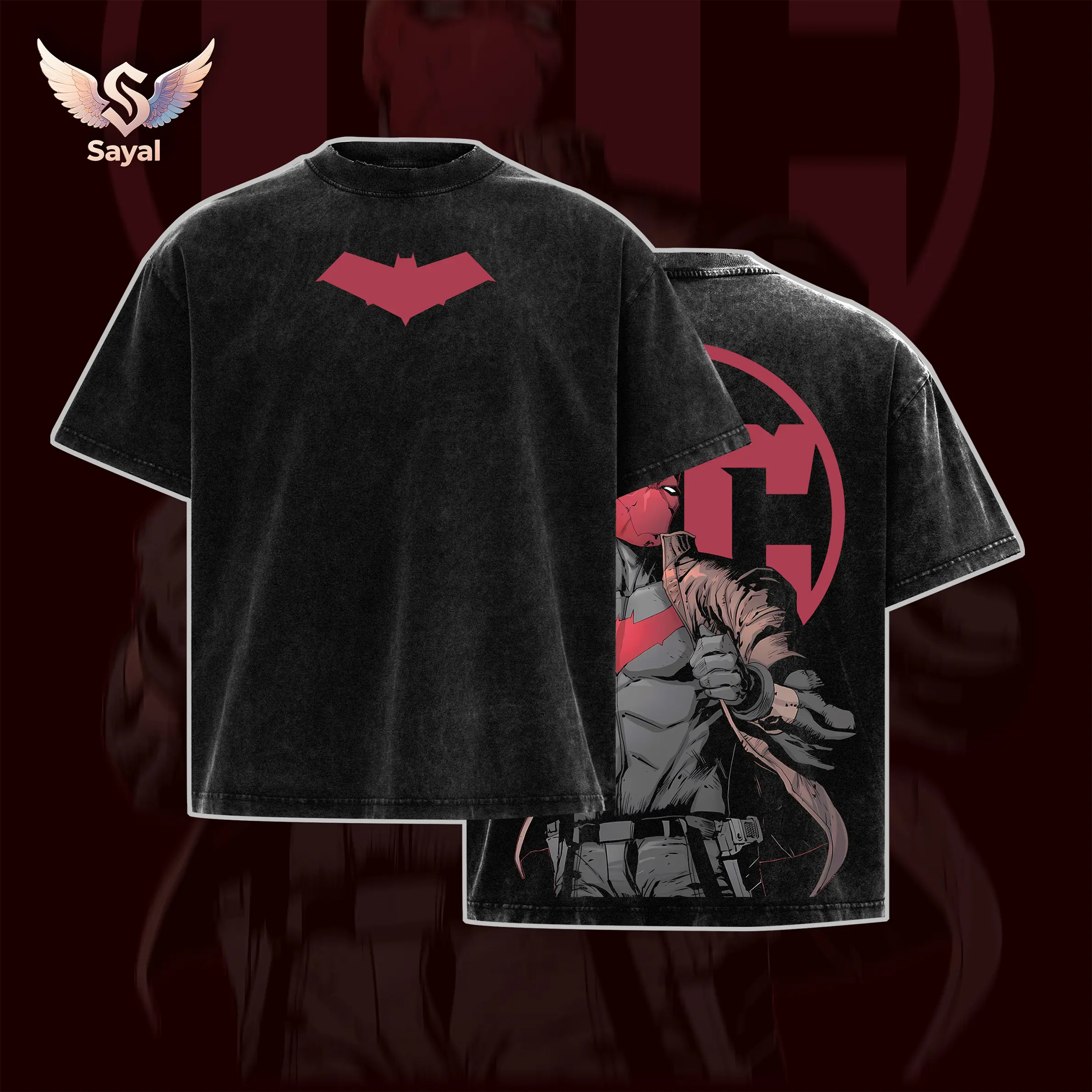 Dark Knight Bat - DCcomic Retro Oversized Heavyweight Cotton Vintage Superhero Tshirt