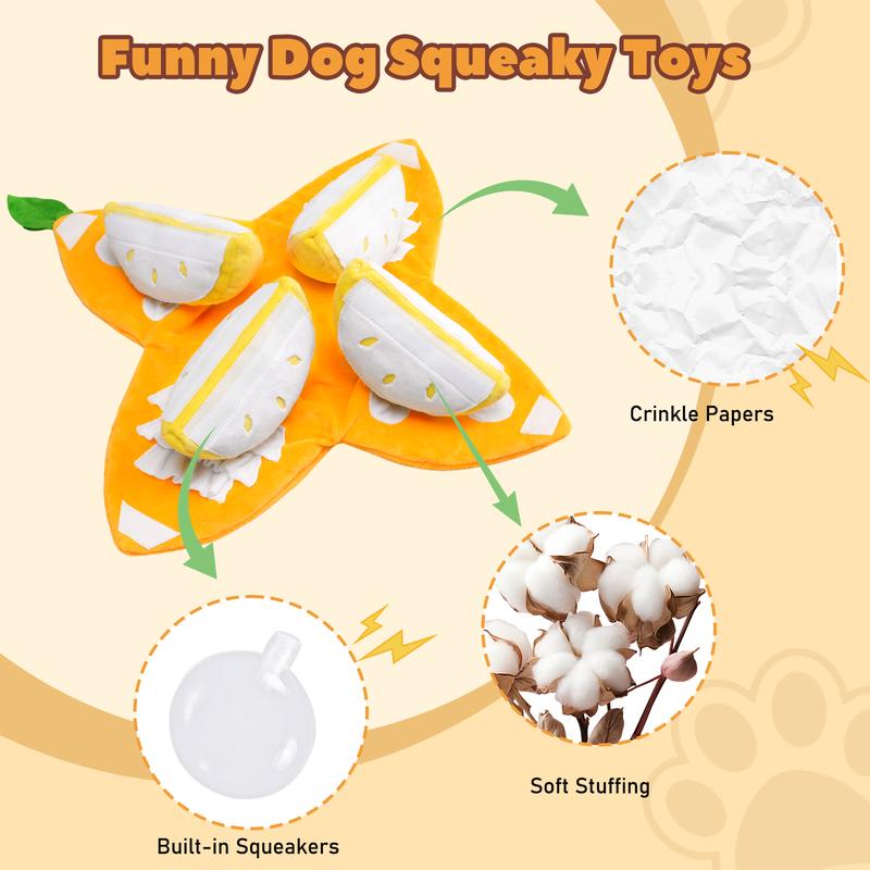 Like A Real Orange: The plush dog toy is designed to mimic a real orange and includes 4 slices and 1 peel treat mat. Stripping off the outer layer, you can see fascinating squeaking toys that can also be used as hide and seek toys. Let your pets participate and entertain with our interactive dog toys, providing endless fun as they discover surprises in this delicious orange inspired toy!