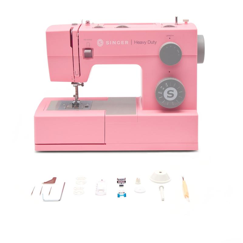 Sew strong and sew bold with the SINGER® Heavy Duty 4411 Pink and Extension Table Bundle. This limited-edition machine pairs industrial-inspired power with a vibrant pink design that adds personality to any sewing space. Built with a powerful motor, durable metal frame, and stainless steel bedplate, the Heavy Duty 4411 easily handles everything from everyday sewing to heavy fabrics like denim and canvas—at speeds up to 1,100 stitches per minute. The included extension table expands your work surface, providing extra support and stability for larger projects such as quilts, home décor, and long seams.