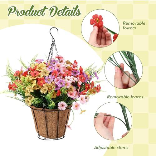 ·Get Valued Package: our artificial hanging baskets with flowers set, includes 10 bundles of mixed-color artificial plants and flowers; Complete with a coconut basket, decorative straw balls, foam, and a sturdy chain, this ensemble spans an impressive 19.6" x 19.6" x 23.6" when fully assembled; Customize your display to complement your decor style and watch as your outdoors space with beauty