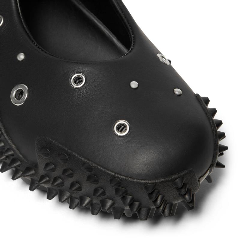 Mostro isn't a shoe for just anyone. For over two decades, it's been worn by those who defy conventions and reject the norm. Taking its name from the Italian word for monster, Mostro is a hybrid creation that draws from two diverse realms: the sleek sprinting spikes of the '60s and the surfing shoes of the '80s. To this day, it continues to captivate with its distinctive, sculptural design, low-profile shape, and avant-garde, spiked sole. With the Mostro Fey, we combine the original's signature bold design with a Mary Jane silhouette.