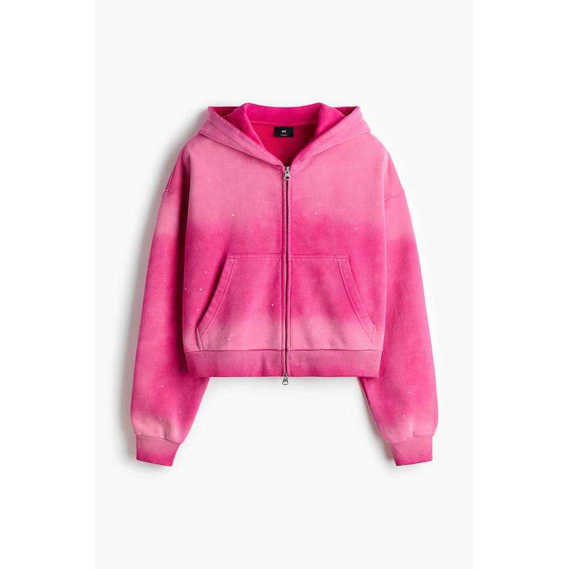 Boxy-style zip-through hoodie in heavyweight sweatshirt fabric with a soft brushed inside. Two-way zip down the front, dropped shoulders, front pockets, long sleeves and ribbing at the cuffs and hem. Oversized fit for a baggy, extra-loose silhouette.