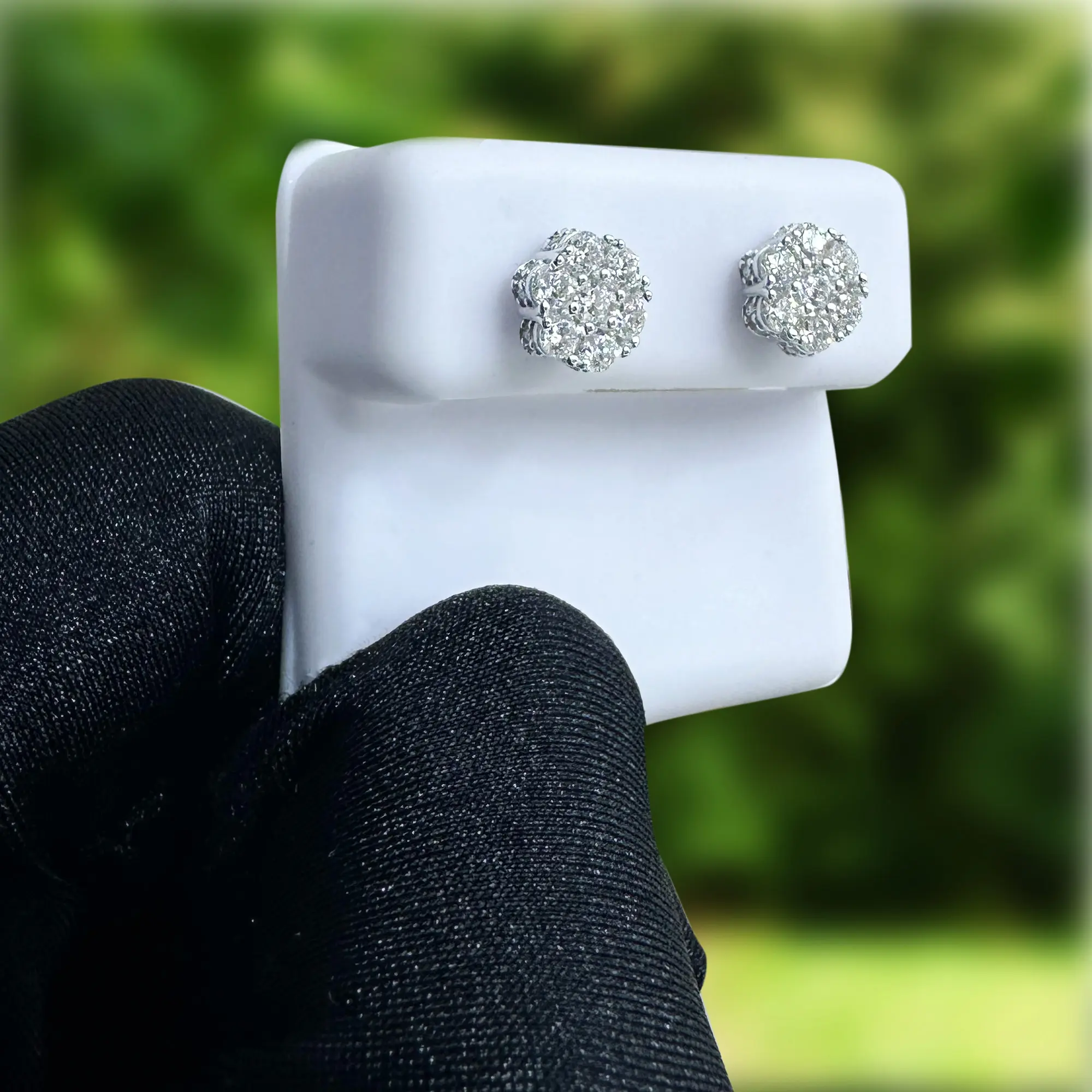 Guarantee you These are one of the most beautiful earrings you would ever wear ! The shine truly speaks for itself , lots of stones were set in with hand style giving you crazy amounts of fire and shine ! We have these earrings IN HAND and ready to ship out SAME DAY!