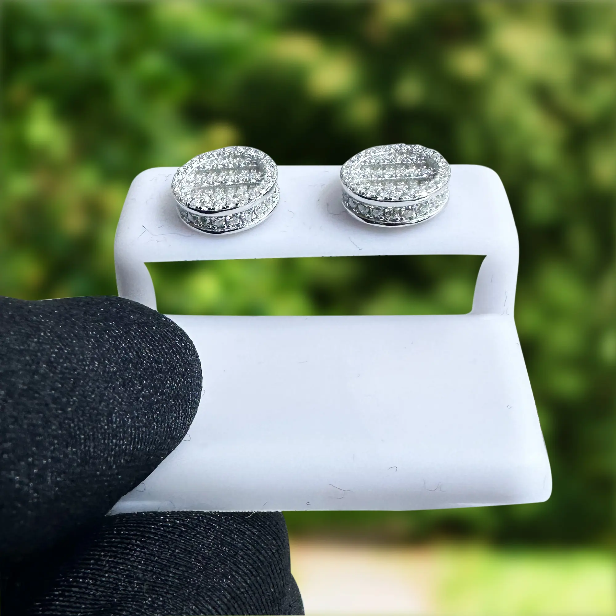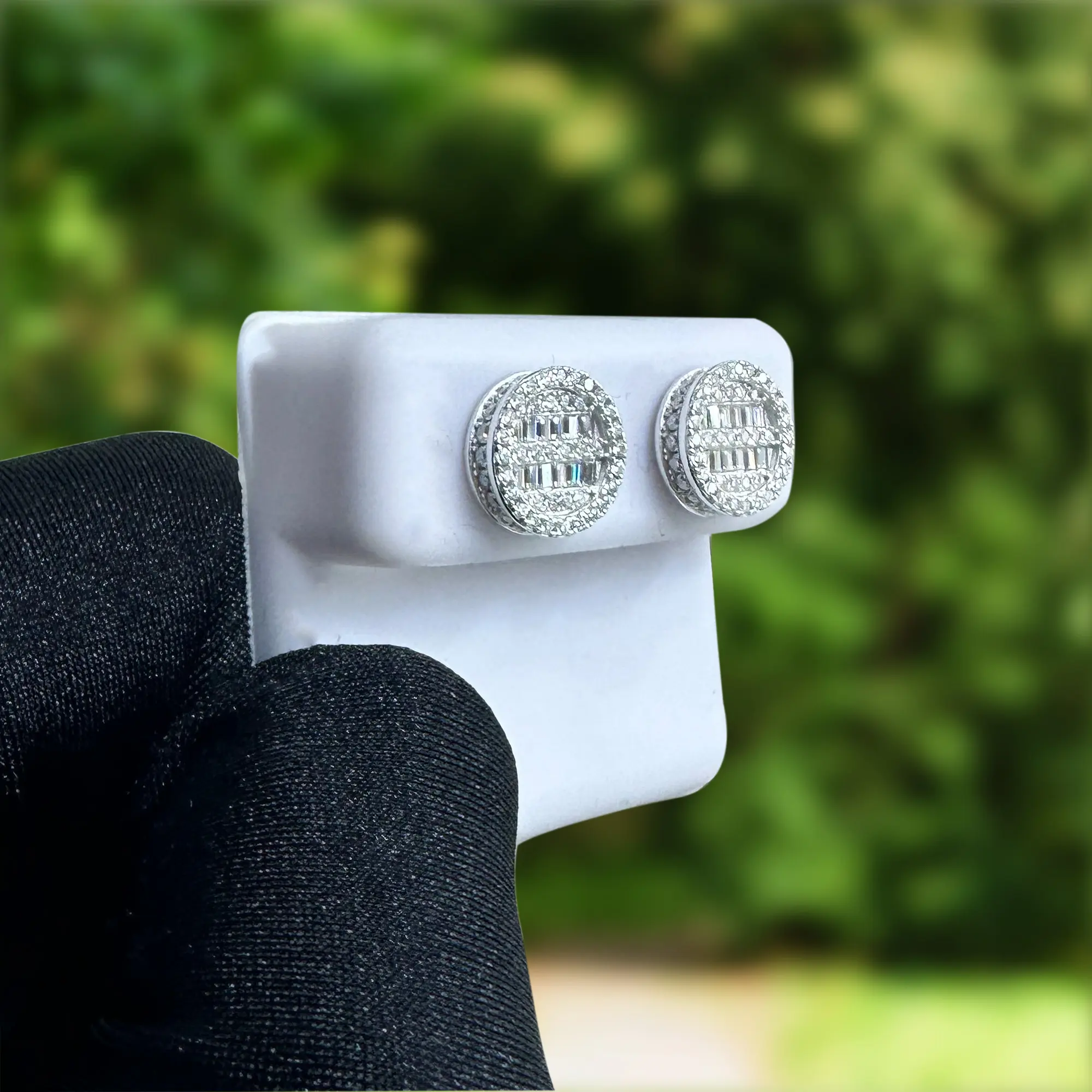 Enhance your everyday look with these exquisite ROUND S925 Silver Stud Earrings with Moissanite Baguette and Round Stones. These stunning earrings are made of 925 Sterling Silver, ensuring their durability and purity.