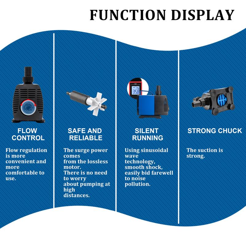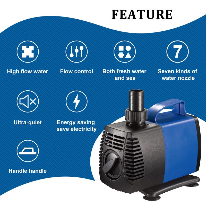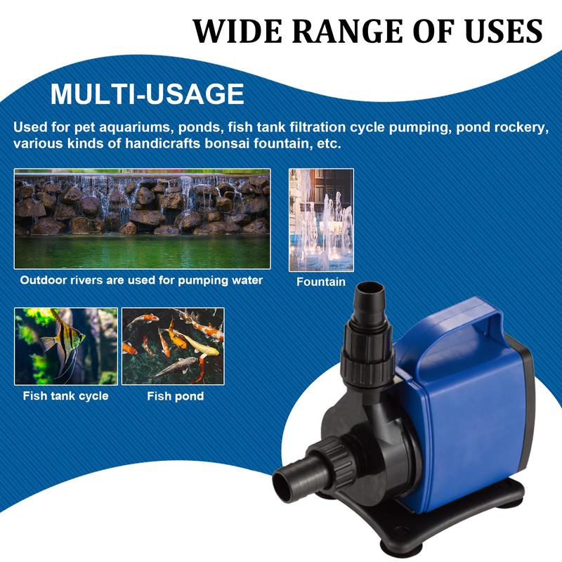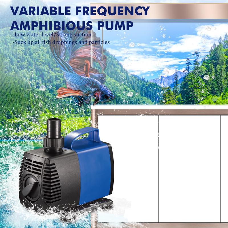 Our AquaDream Amphibious Water Pump is perfect for aquariums, ponds, hydroponics systems, fountains, and landscaping. It is saltwater and freshwater safe, ensuring versatile use. The ultra-quiet operation and energy-efficient design make it a reliable choice. It features an adjustable flow control dial and a smart auto shut-off function.