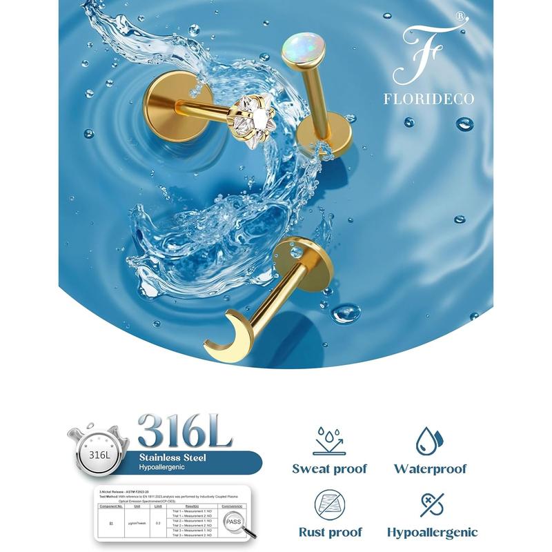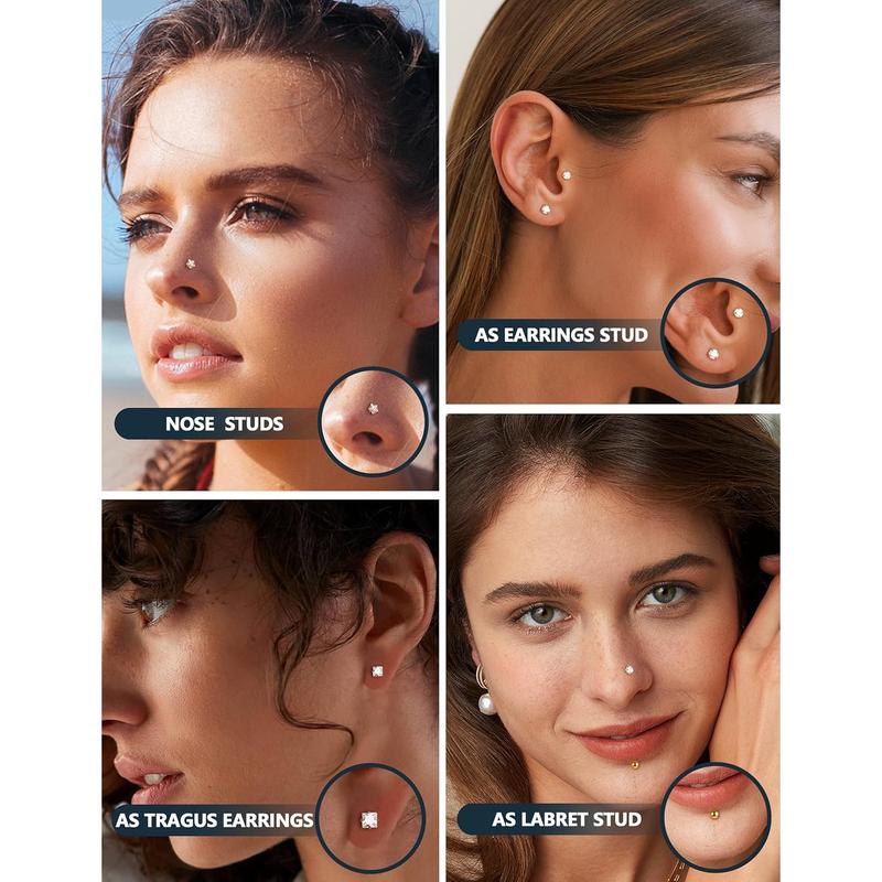 ·Flat back Nose Stud for Piercing: These piercing jewelry not only can be used as nose studs but also can be used as cartilage earrings helix tragus tragus piercing jewelry lip piercing jewelry .They can be worn in different parts of the ear either individually or in layers,give you a different wearing experience.