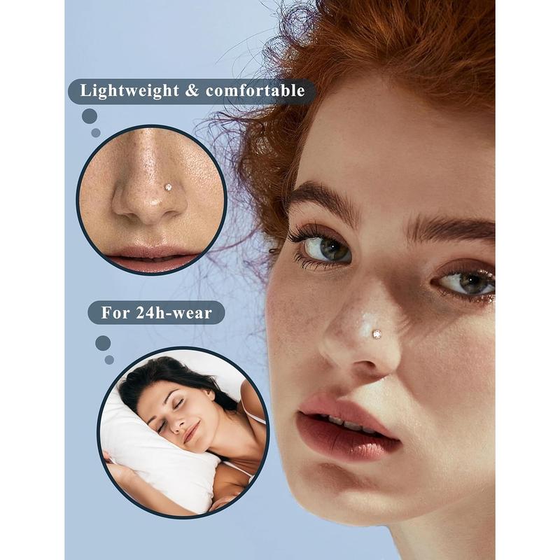 ·Threadless Nose Studs for Women: Push back closure, threadless push in design easy to put or wear. Nap flat back nose stud are ensuring comfortable experience, perfect for wearing all day even when sleeping sporting or showering.