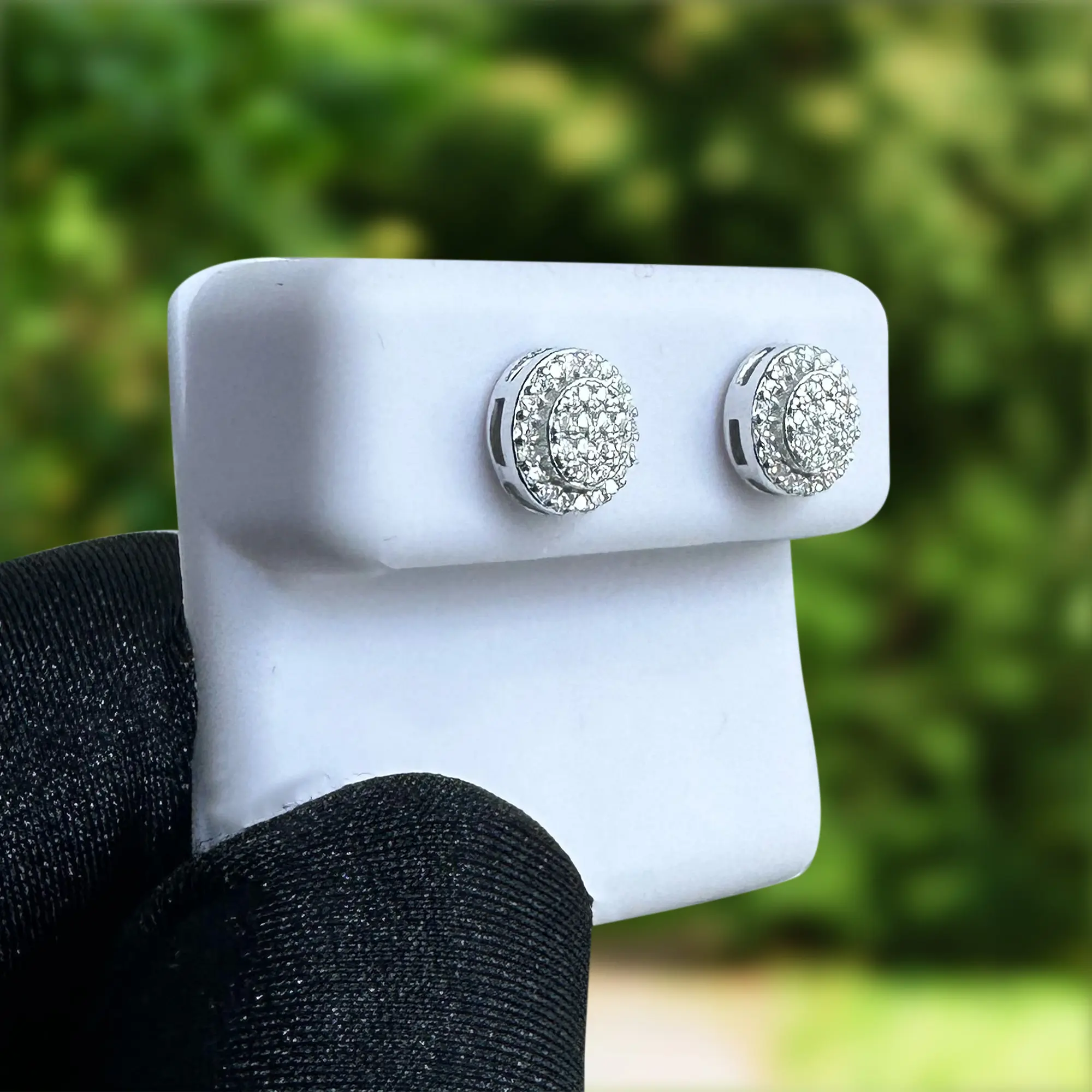 Guarantee you These are one of the most beautiful earrings you would ever wear ! The shine truly speaks for itself , lots of stones were set in with hand style giving you crazy amounts of fire and shine ! We have these earrings IN HAND and ready to ship out SAME DAY!