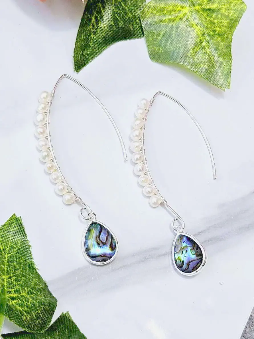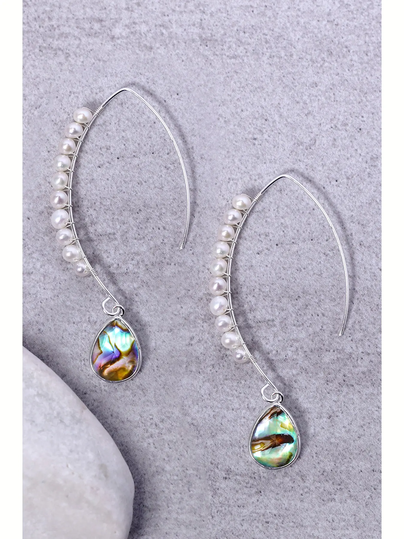 Sterling Silver Abalone & Freshwater Pearl Threader Earrings