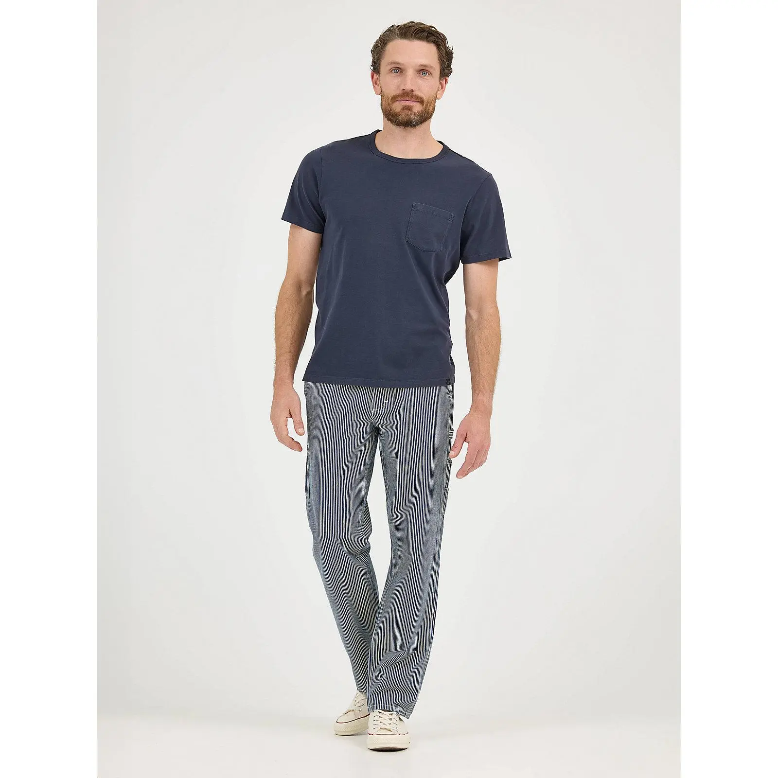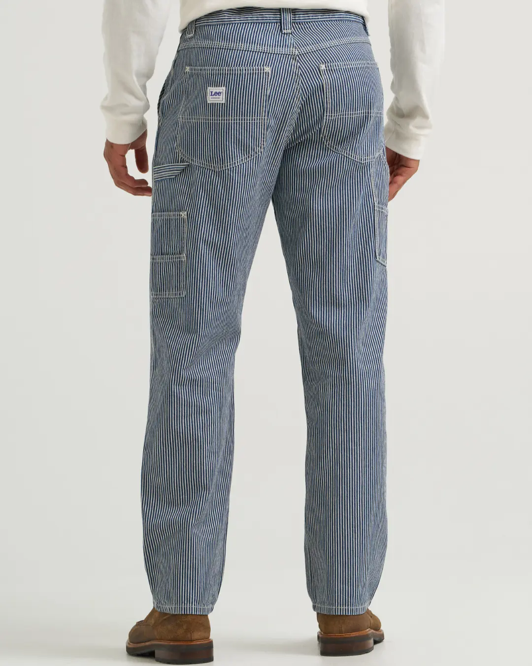 Our latest loose fit carpenter jeans pay homage to an American workwear icon. They feature Legendary details like authentic Lee workwear hardware and patches, a hammer loop, two extra tool pockets, a railroad stripe pattern, and a comfortable mid-rise loose fit.