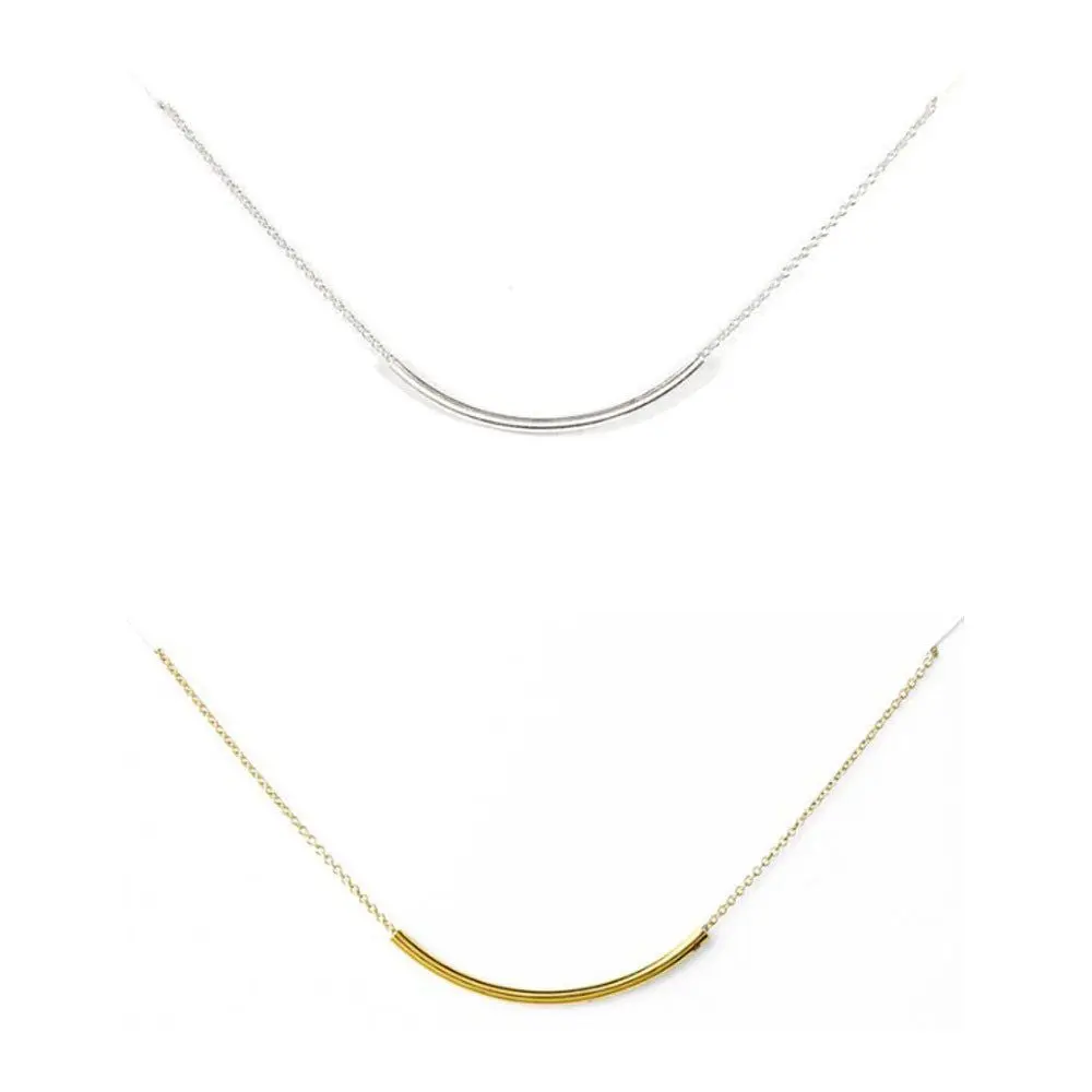 SWEET SMILE Curvy Bar Necklace In 18 Kt Gold Plating And 925 SS Plating