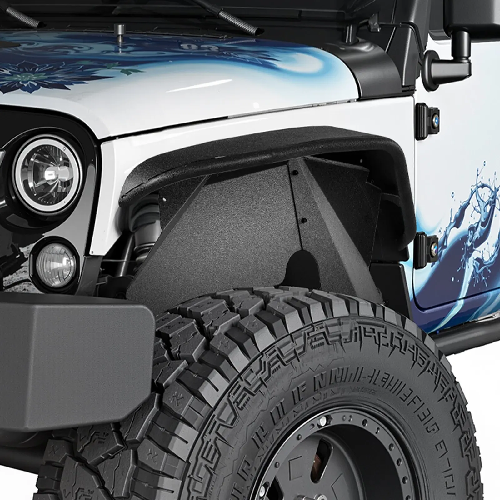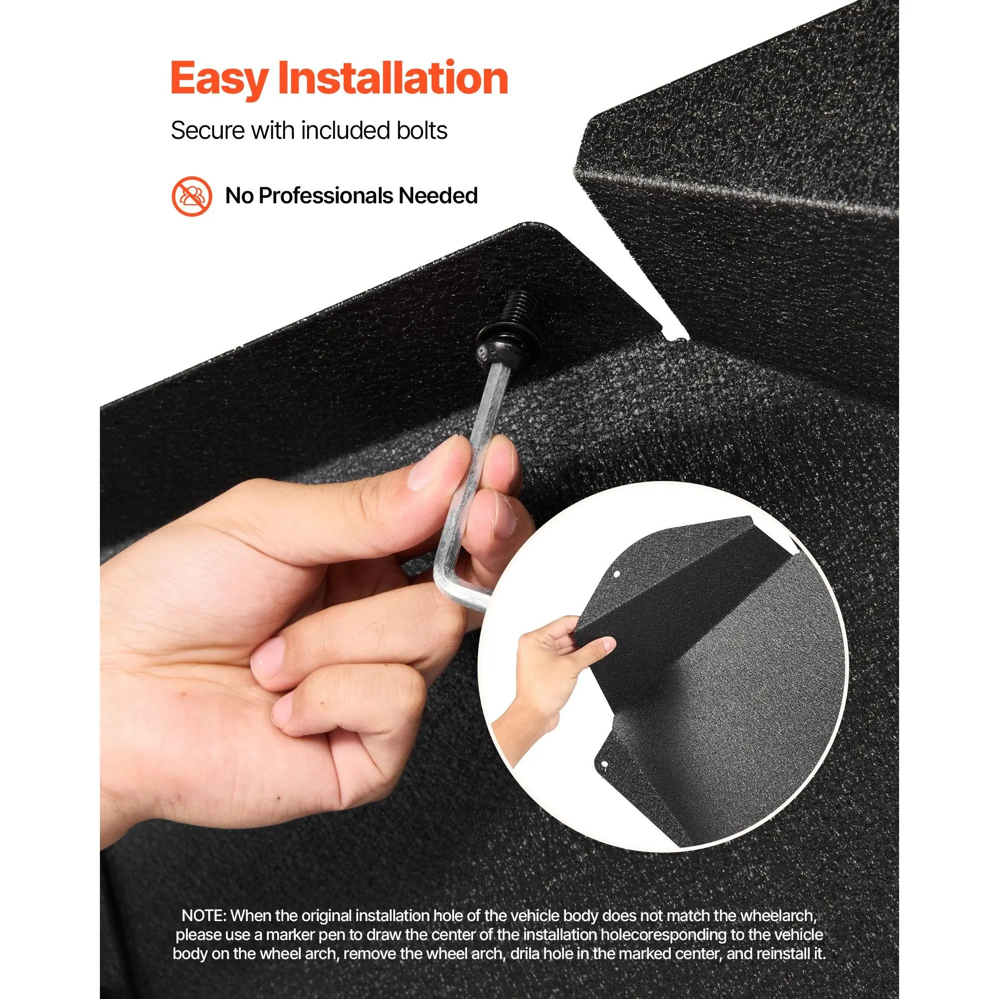 Fitment Flexibility: Our wheel well liner set includes 4 front & 6 rear fender liners.Engineered to fit 2007-2018 Jeep Wrangler JK/JKU 2/4-door models, this kit offers a seamless fit.Confirm compatibility with your specific vehicle model to ensure a smooth installationDurable Coverage: The inner fender liner set shields your vehicle from road debris, mud, and rocks, ensuring that your car's paint and body panels remain undamaged.Whether you're commuting on highways or tackling off-road adventures, this set offers a reliable safeguard, allowing you to focus on enjoying the driveScratch-Resistant Design: Built with premium steel, this inner fender liner offers exceptional wear resistance.The rust-resistant coating guards against harsh weather, scratches, and impacts from off-road adventures.It maintains its shape over time, ensuring durability and long-lasting useEasy Installation: No drilling or cutting required!This wheel well liner cover comes with everything you need for a quick installation.The included clear instructions and all necessary hardware make it easy to install, even without professional help, so you can do it yourself in no timeEnhance Your Jeep: Install this VEVOR fender liner and instantly elevate your Jeep's look!The rugged, bold design complements the off-road nature of your vehicle, enhancing its overall appeal.The panels are paintable, allowing you to customize your Jeep and show off your creativityVEVOR Inner Fender Liner, Front & Rear Fender Liner Compatible with 2007-2018 Jeeps JK/JKU 2/4 Doors, Steel Mud Guards Bolt-on Style Fenders Flare, Wheel Well Cover Fenders Flare Liners, Black