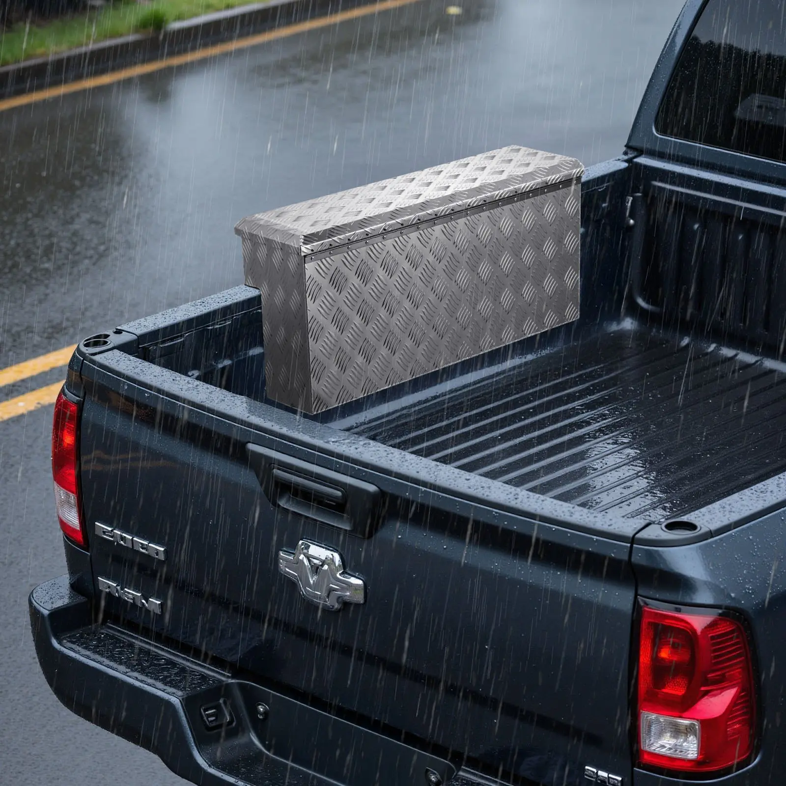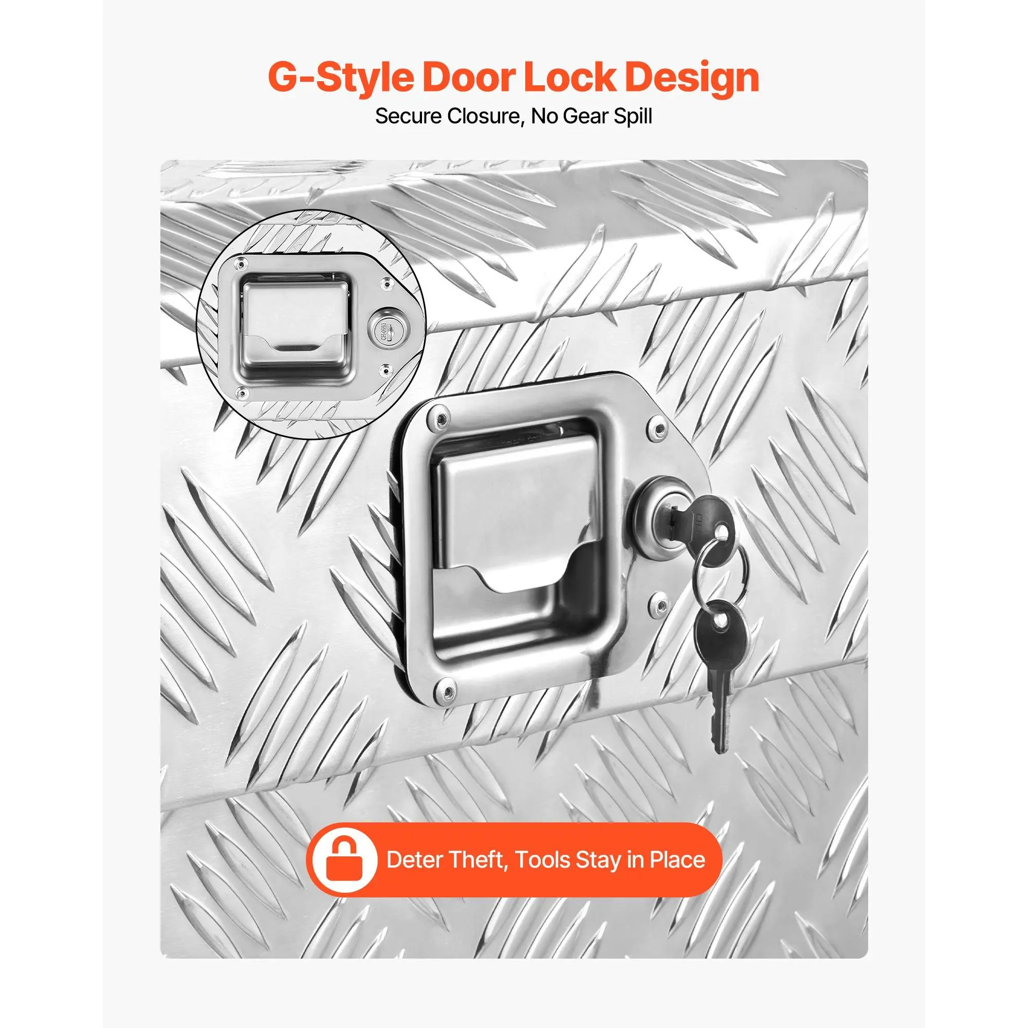 Strong Load-Bearing: Constructed from 0.06 in / 1.4 mm metal panels with tread patterns to enhance strength, the step platform can support up to 220 lbs / 100 kg.The truck tool box handles heavy load of tools, providing stable storage solutionDual Sealed Protection: Featuring seamless welding combined with built-in rubber sealing strips, this truck toolbox provides dual-layer protection.Even in rainy or humid conditions, your tools stay dry and clean, helping avoid corrosion and extend lifespanLarge Capacity Storage: Our truck bed box provides 2.64 cu ft (75 L) of storage capacity and can hold up to 33 lbs / 15 kg per item.From tools and equipment to other essentials, everything can be neatly organized, meeting diverse storage needsSecure & Anti-Theft Design: Equipped with a reliable latch that stays firmly closed, avoiding items from spilling during transport.It comes with padlocks for added security, giving you peace of mind that your tools and belongings are protectedVersatile Applications: This truck toolbox can be installed on pickup trucks, RVs, trailers, and more.Whether for daily transport, outdoor adventures, or on-site work, it fits multiple scenarios and keeps your tools organized wherever you need themVEVOR Truck Bed Tool Box, Heavy Duty Aluminum Tool Box with Tread Patterns, Storage Toolbox Chest Organizer with Lock and Key, Ideal for Pickup, Truck Bed, RV, Trailer, 34 x 12 x 15.4 in, Silver