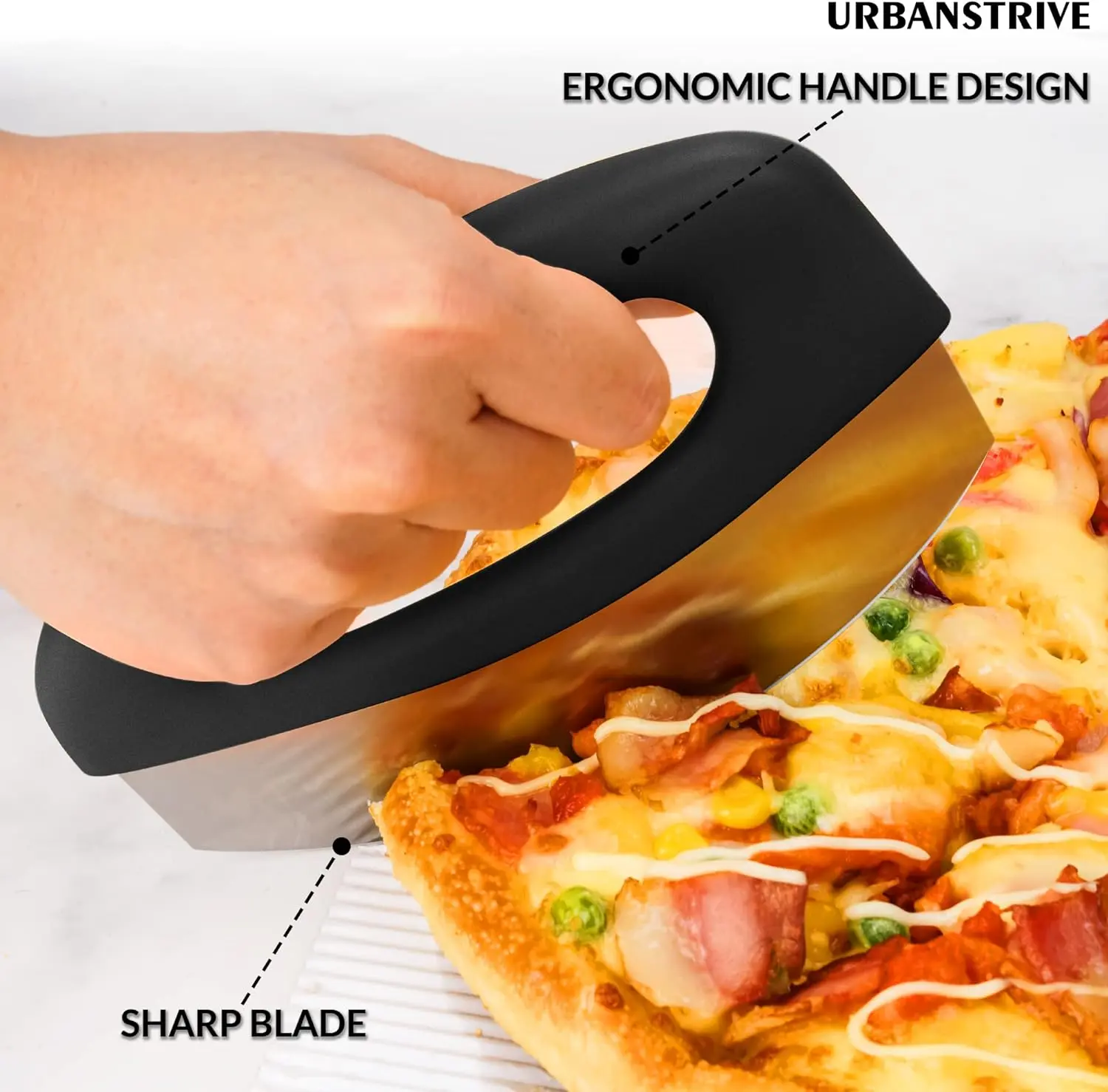 Heavy Duty Stainless Steel Pizza Cutter with Cover, Super Sharp Blade Pizza Knife Pizza Cutter Rocker, Perfect Kitchen Gadgets for Pizza Cutting Home Essentials, Black