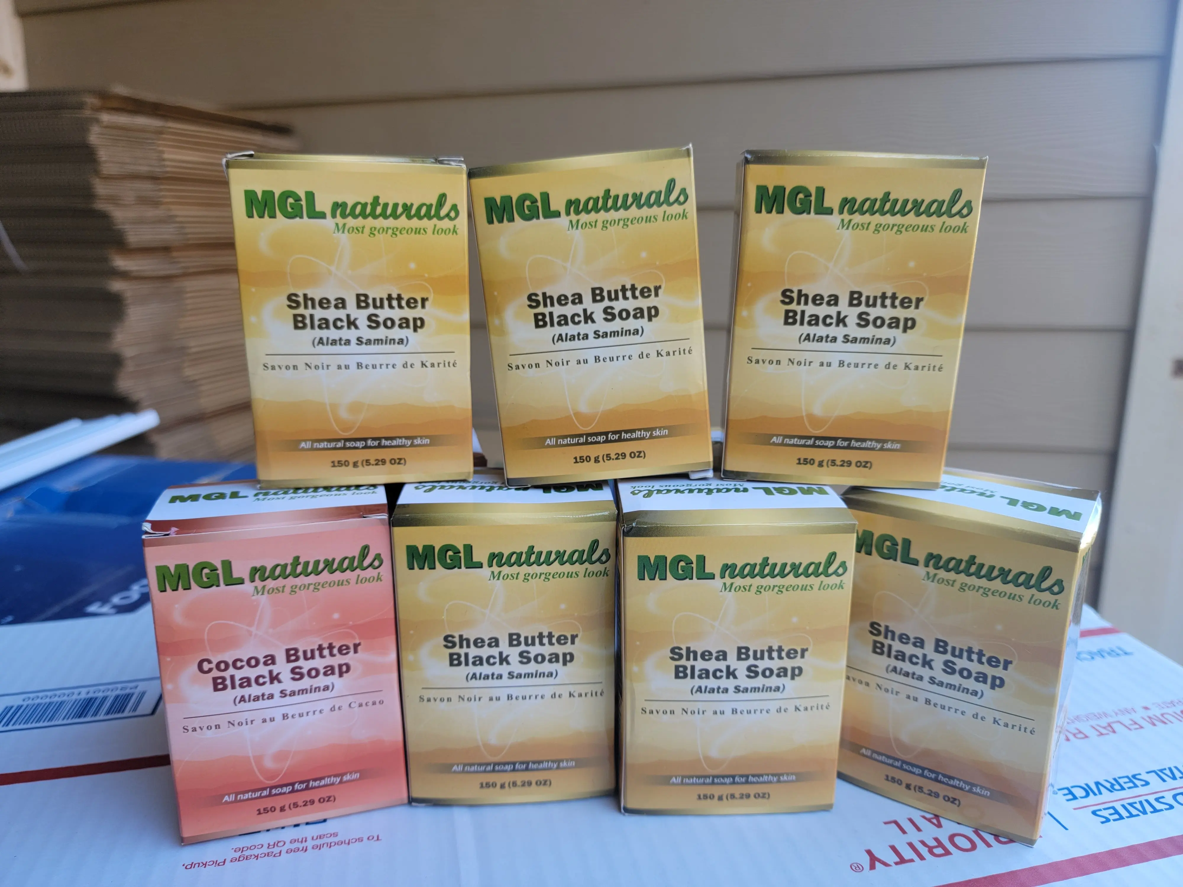 MGL Naturals Shea Butter Black Soap is an organic, traditional handcrafted soap. Made entirely from natural ingredients, it is enriched with unrefined shea butter. This 100% natural soap thoroughly cleanses the face and body, removing makeup. It leaves the skin refreshed and smooth. Excellent for normal skin and everyday use. No artificial content.