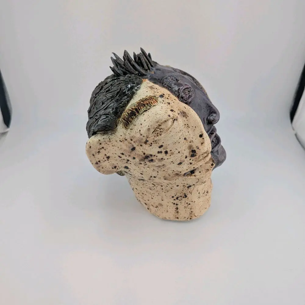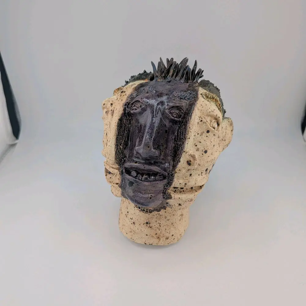 Handmade Sculpture named Jim & Jimmy. Low-fire clay & glaze decoration. A unique and one of a kind hand-crafted piece.