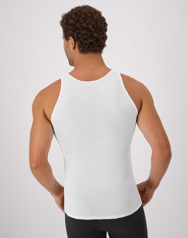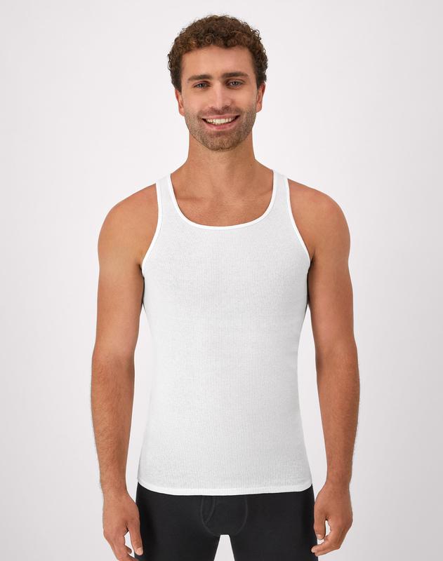 THE COMFORT YOU'VE BEEN CRAVING Not all tank undershirts are the same. The experts at Hanes spend their days making basic ribbed tank undershirts even better. These ComfortSoft® cotton tanks now feature a longer length and all-day flex fabric that moves with you and maintains the fit you expect. Cool Comfort® moisture-wicking fabric works to keep you feeling cool and comfy - no matter what the day brings. Soft and lightweight, these cotton tanks are designed with a banded scoop neckline and armholes for exceptional sturdiness. One more detail you'll appreciate is the Tagless® design for itch-free comfort. Stock up on these Hanes-best cotton tank undershirts for men in a convenient multipack. *America's #1 A-Shirts Brand - Source: Circana, Retail Tracking Service, U.S. Brand Sales, 12 Months Ending December 2024.