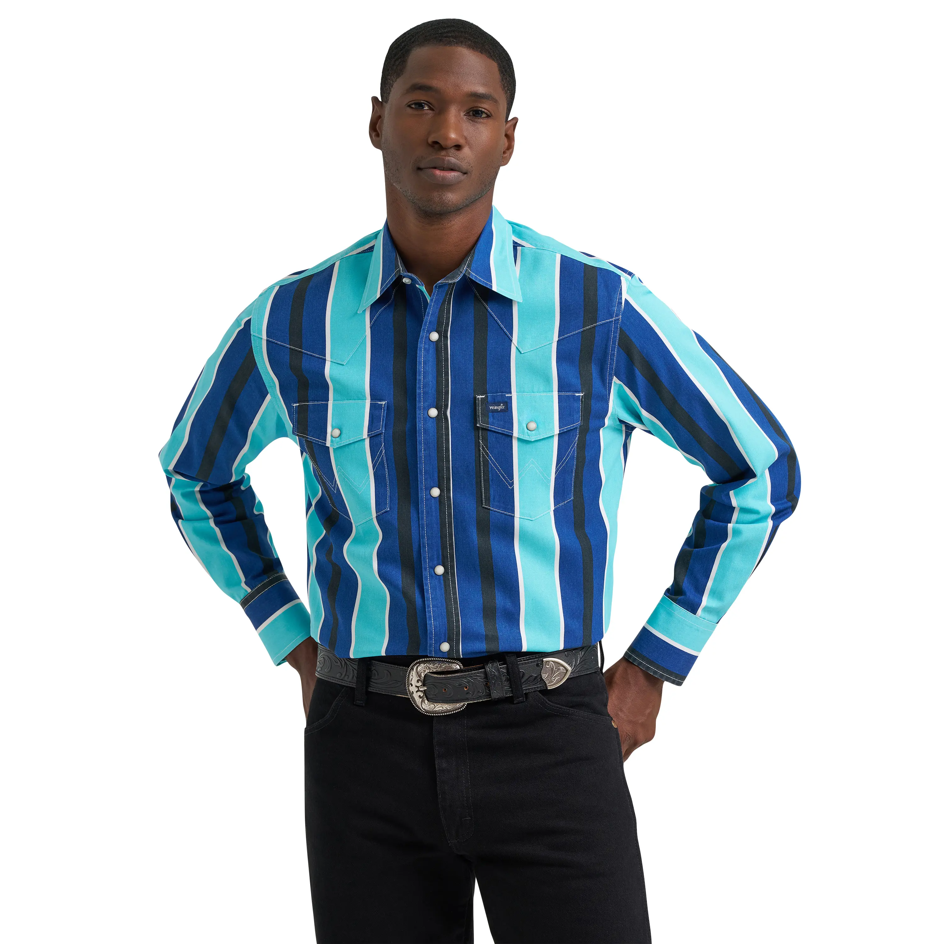 Can’t call it a comeback when the Wrangler Brushpopper is just warming up. This shirt’s earned its stripes the hard way since 1979. Cut to move. Tough enough to last. Honest from the first stitch. But somewhere between sundown and the last call, it found a second life. This vintage-inspired Western snap work shirt kicks any outfit into next gear with its bold and colorful stripes, and no two shirts are exactly alike. Crafted from cotton and cut in a regular fit, it offers comfort from season to season. Plus, you’ll have all those iconic details, including Western yokes from front to back, chest pockets with the signature ‘W’ embroidery, and pearl snaps for easy layering when you feel like it.