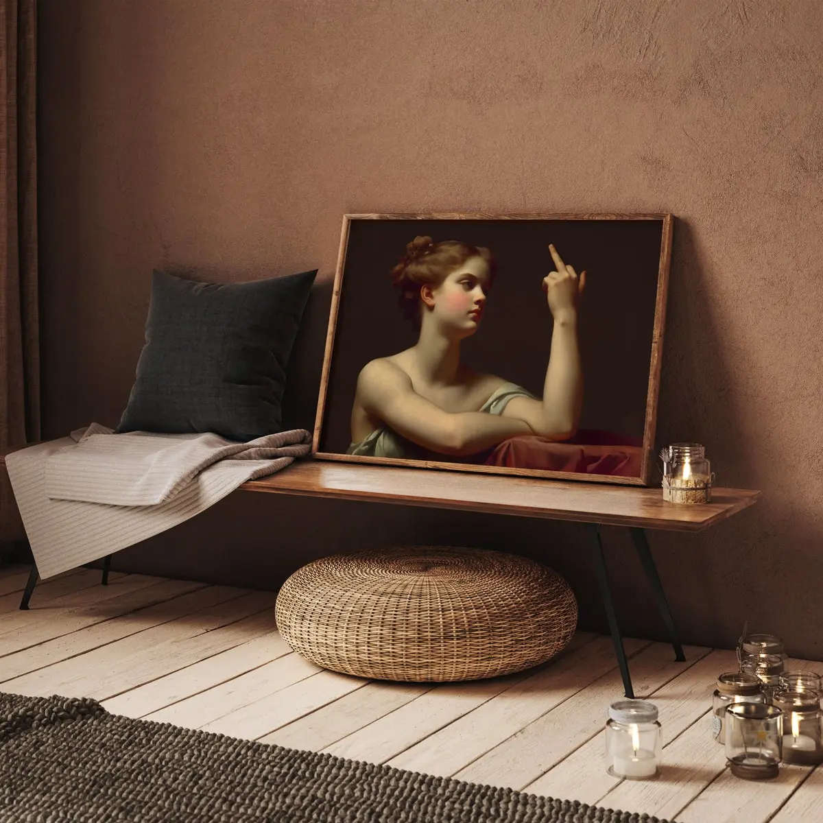 5. Room Decor, Woman with Middle Finger Funny Alternative Wall Art Gift Alter Art Antique Neoclassical Oil Painting Eclectic Wall Art Portrait