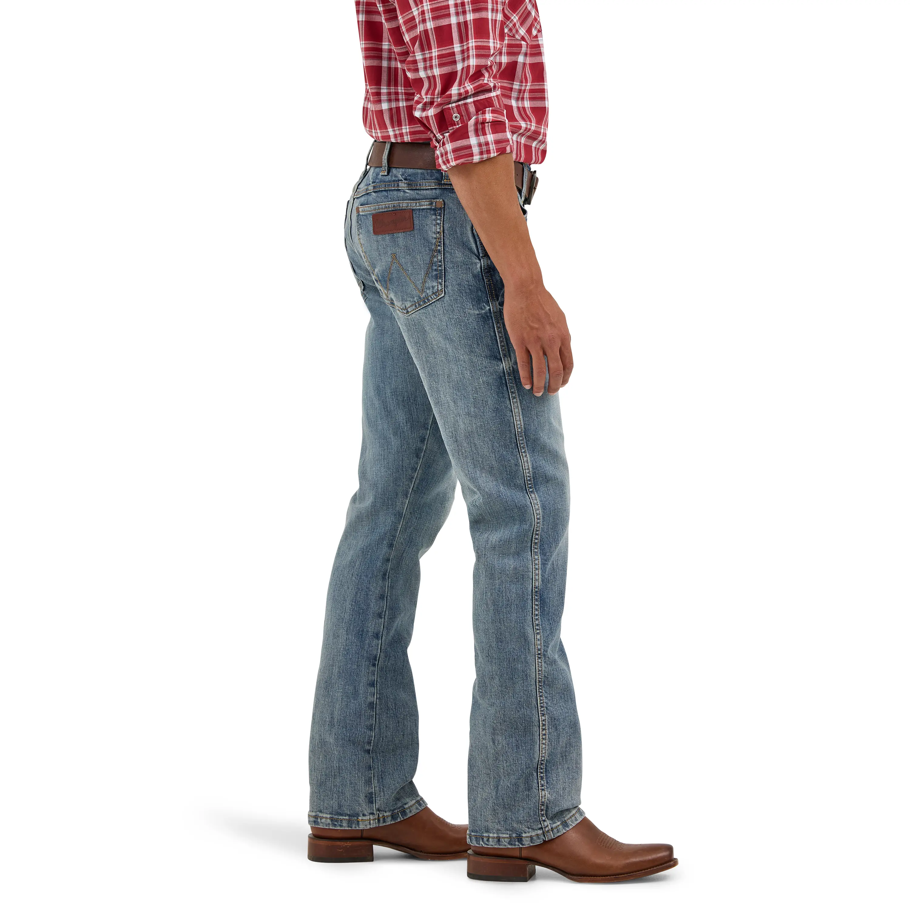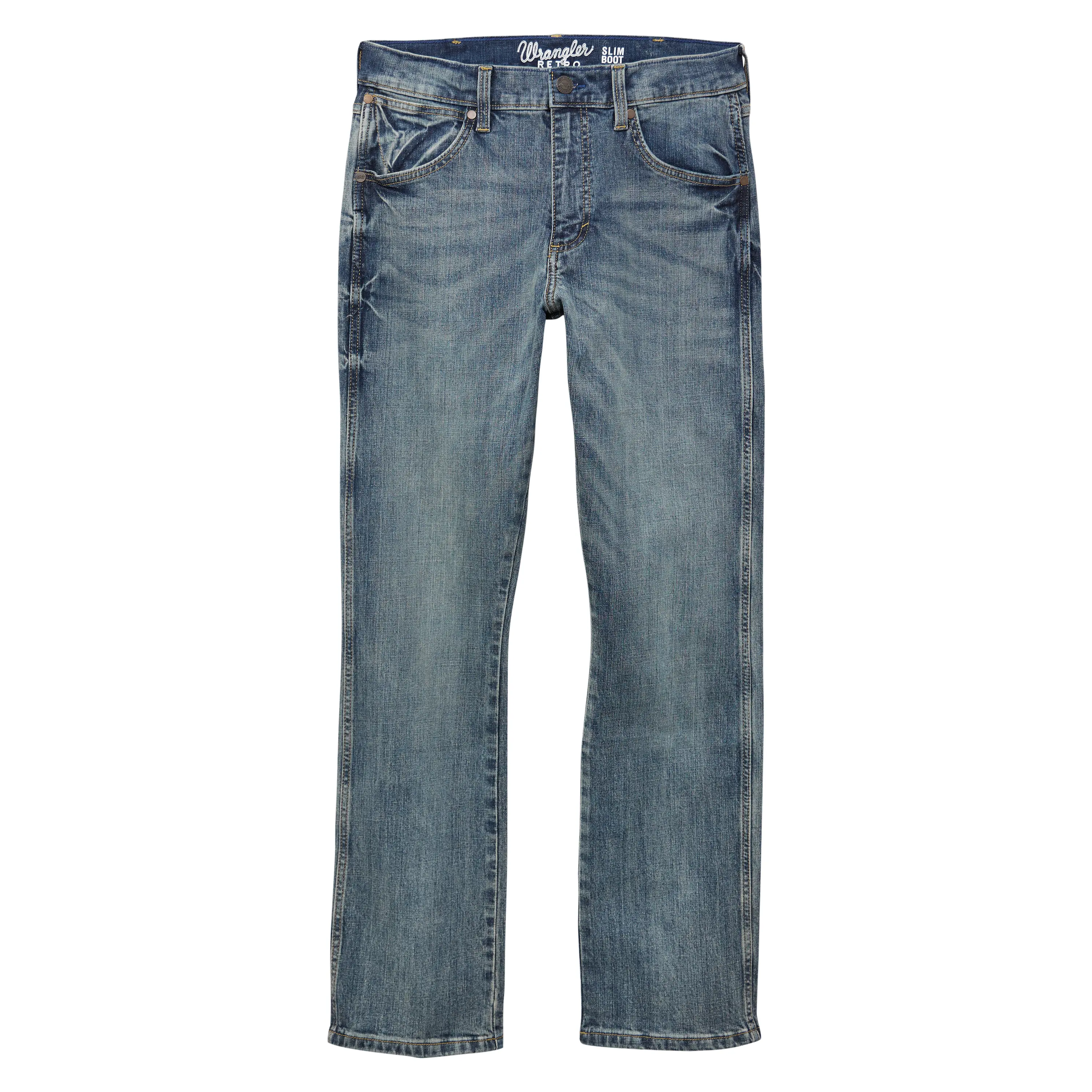 Since 1947, Wrangler jeans have been a cowboy-approved wardrobe staple. Inspired by our Western heritage, these Wrangler Retro jeans combine our most iconic features with contemporary fits and washes. This updated classic features the same worn leather patch with our rope logo, 'W' stitching on the back pockets, and five-pocket styling. These men's slim bootcut jeans feature a streamlined silhouette through the seat, thigh, and knee, but the leg widens from the knee downward, which is good news for boots. When it comes to finding the best bootcut jeans for men, your search ends here.