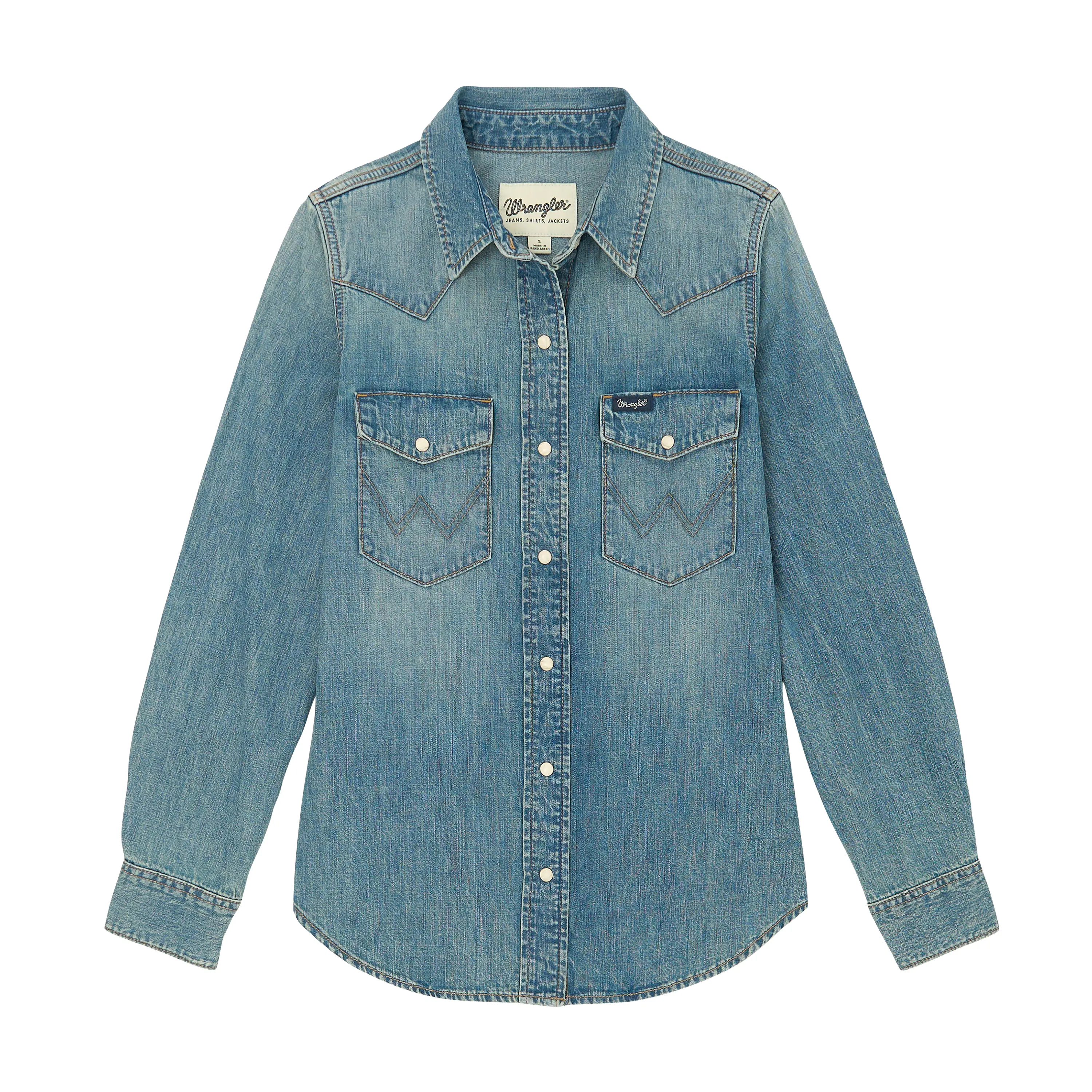If you’re anything like us, there’s no such thing as too much denim. Our classic Women's Vintage-Fit Denim Western Snap Shirt features a regular fit silhouette that’s cut closer to the body than a boyfriend fit but still easy to layer if you need a little extra something. It’s crafted from 100% cotton for nonstop comfort. It also comes with all the heritage details, including flap chest pockets with the ‘W’ stitching, one-point yokes from front to back, and pearl snaps along the placket. Plus, you can leave it untucked or tuck it in to your favorite pair to create a double-denim look that’ll get you noticed.