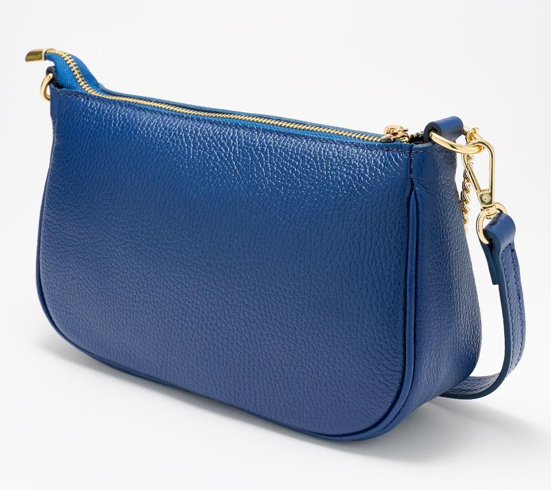 This Lady's got a lotta looks. With three interchangeable straps, the Lady Milano convertible's got a chain look for chic moments, a leather shoulder strap for on-the-go ease, and a crossbody for hands-free convenience, so you can adapt your look in seconds. Pockets keep your phone, cards, and essentials organized through every outing. Transition from a day at work to evening plans without skipping a beat. From Filomena Amore.