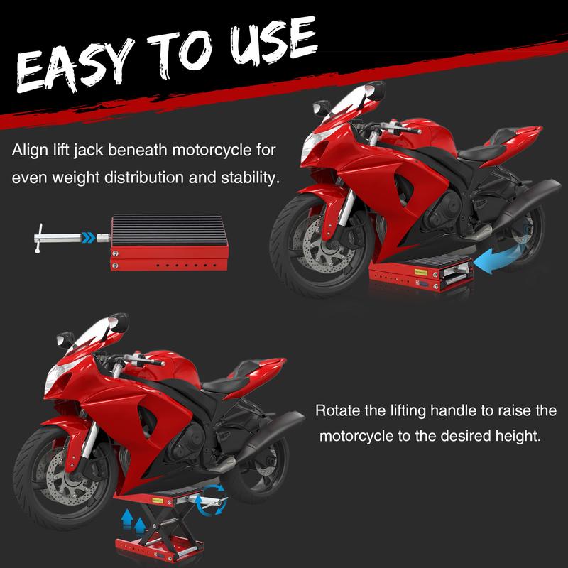 Whether for regular maintenance, repairs, or cleaning, this motorcycle jack combines strength, safety, and convenience. Trust this professional-grade lift to enhance your motorcycle handling experience.