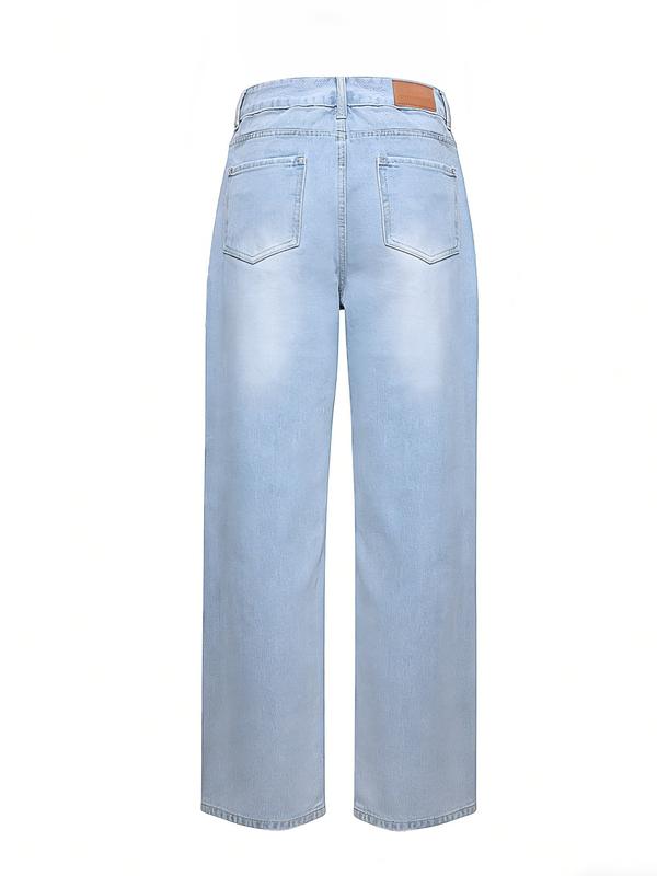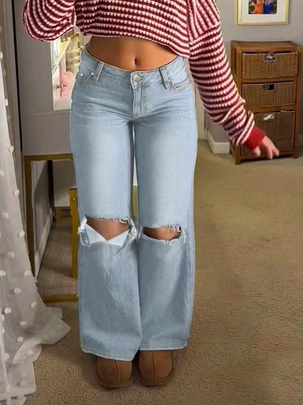 NVFelix Women's Plain Distressed Jeans, Fashion Casual Denim Pants for Daily Outdoor Wear, Women's Denim Jeans for Spring & Fall