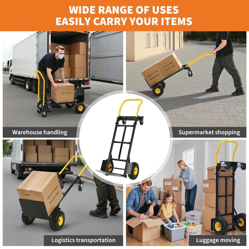 5. Convertible Hand Truck, 2-in-1 Folding Dolly Cart with 4 Non-Flat Wheels | Heavy Duty 400 Lb Capacity | for Moving, Warehouse, Office & Industrial Use