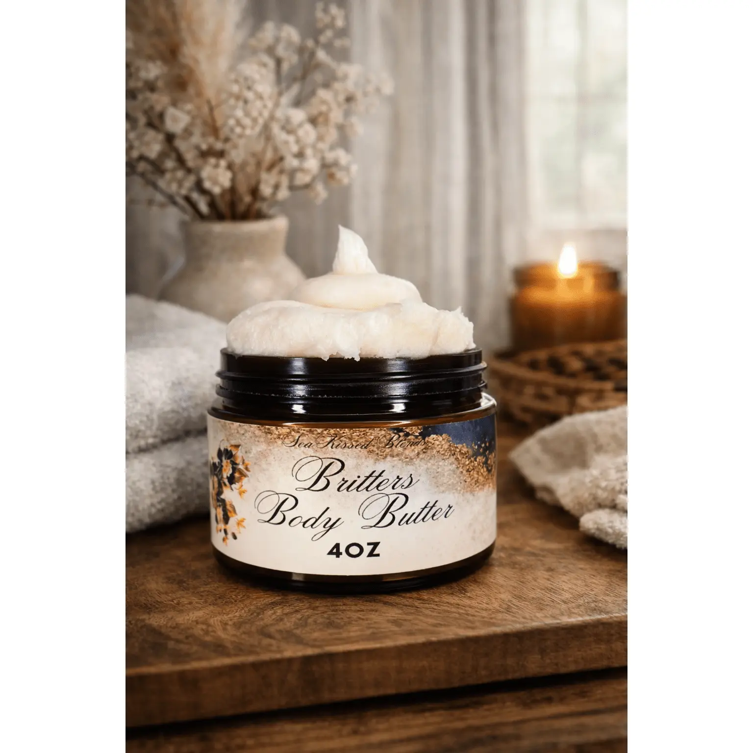 Britters Body Butter is crafted to leave your skin soft, smooth, and deeply moisturized with a rich, creamy finish. The texture melts beautifully into the skin, absorbing easily and leaving behind a velvety softness that feels comforting and effortless.