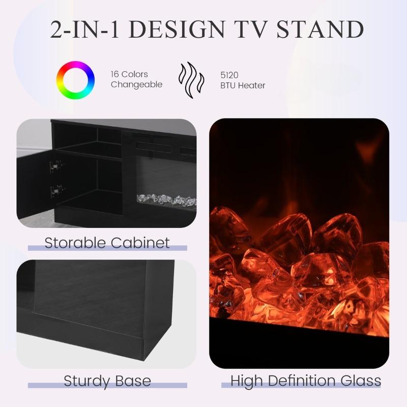 STYLISH DESIGN: A 70-inch wood TV table, and 36-inch electric fireplace combine. The freely changeable lighting can be adapted to all different types of home styles. It is a perfect choice for you!